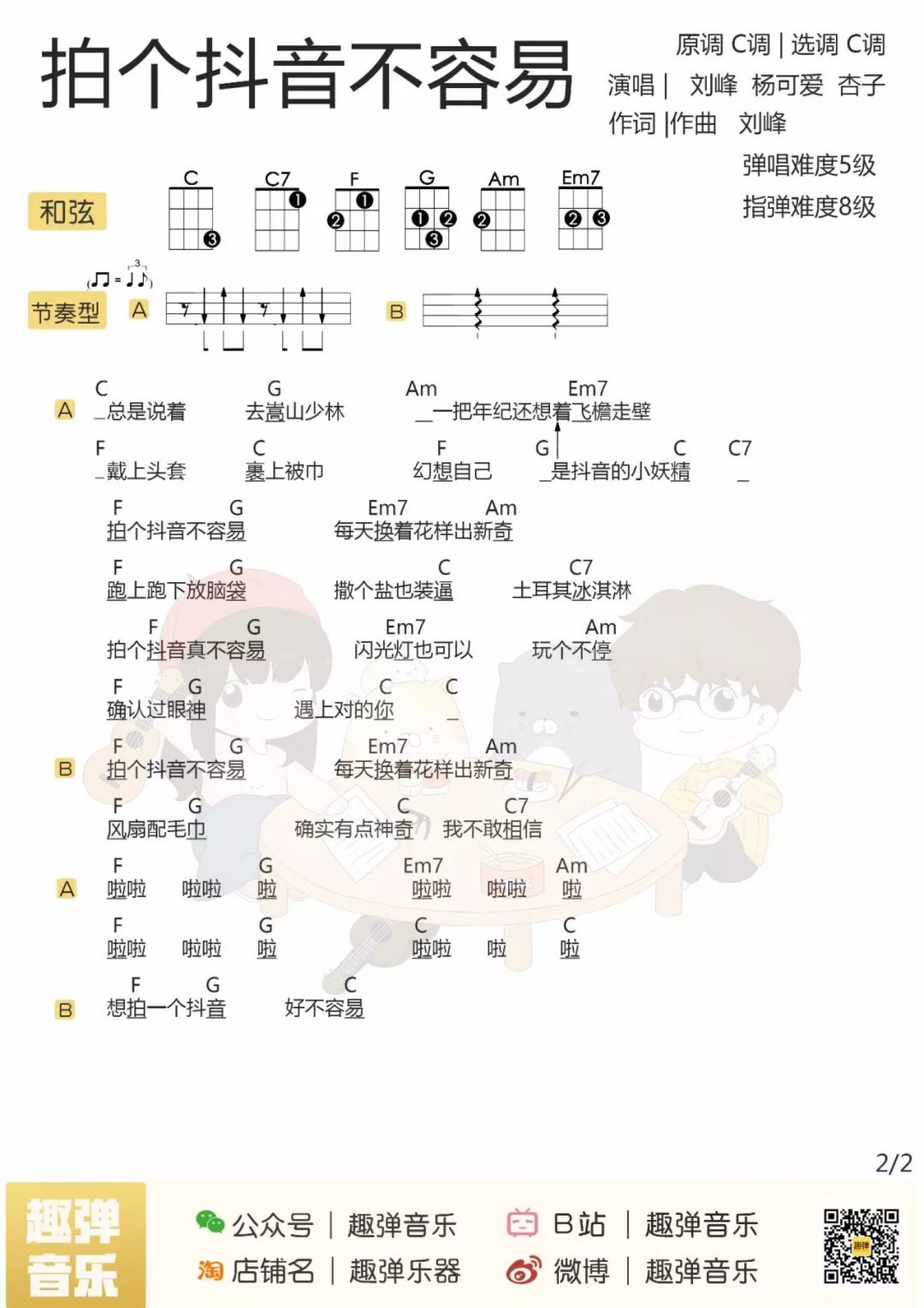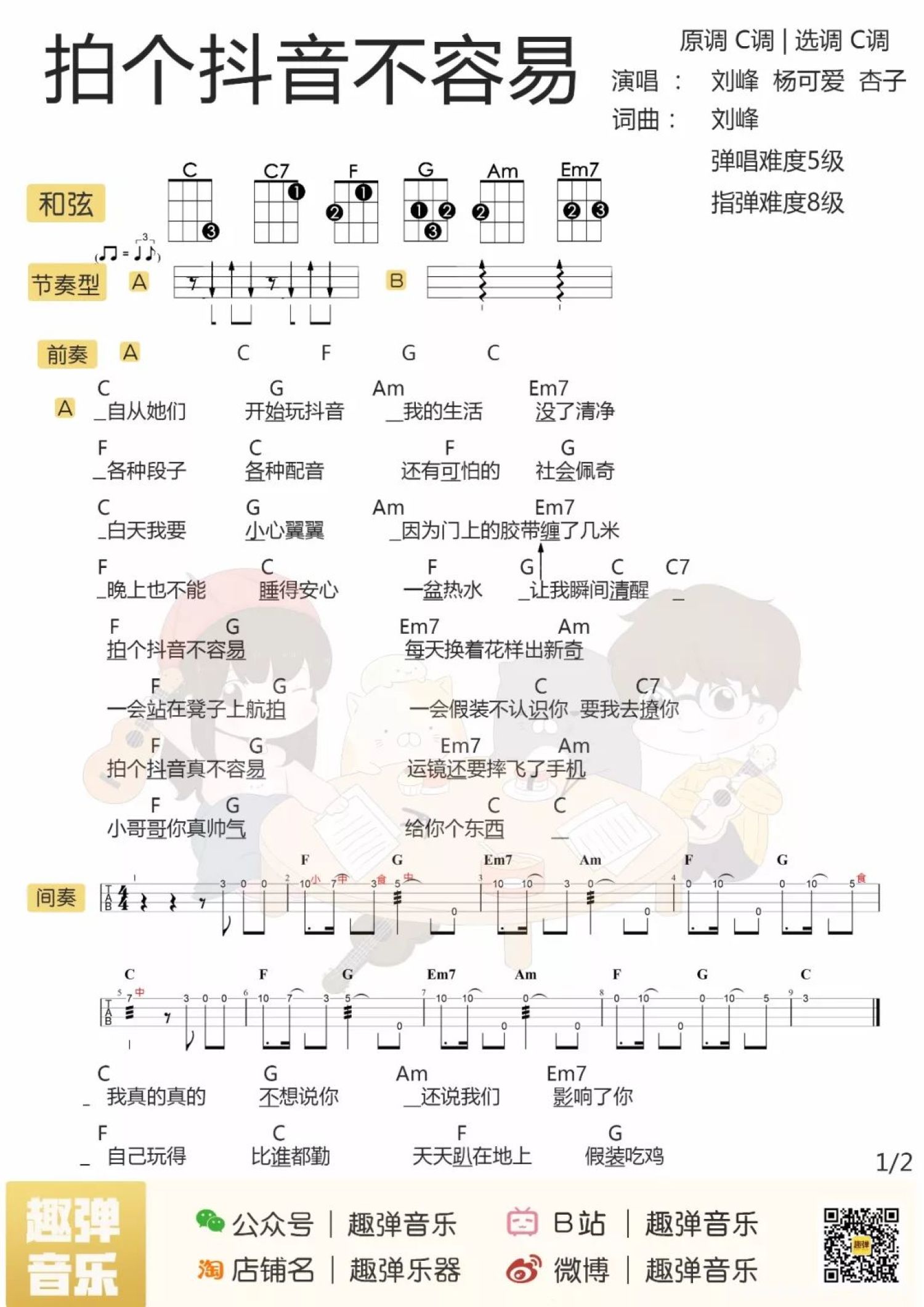 当前位置:琴谱网>尤克里里>拍个抖音不容易
