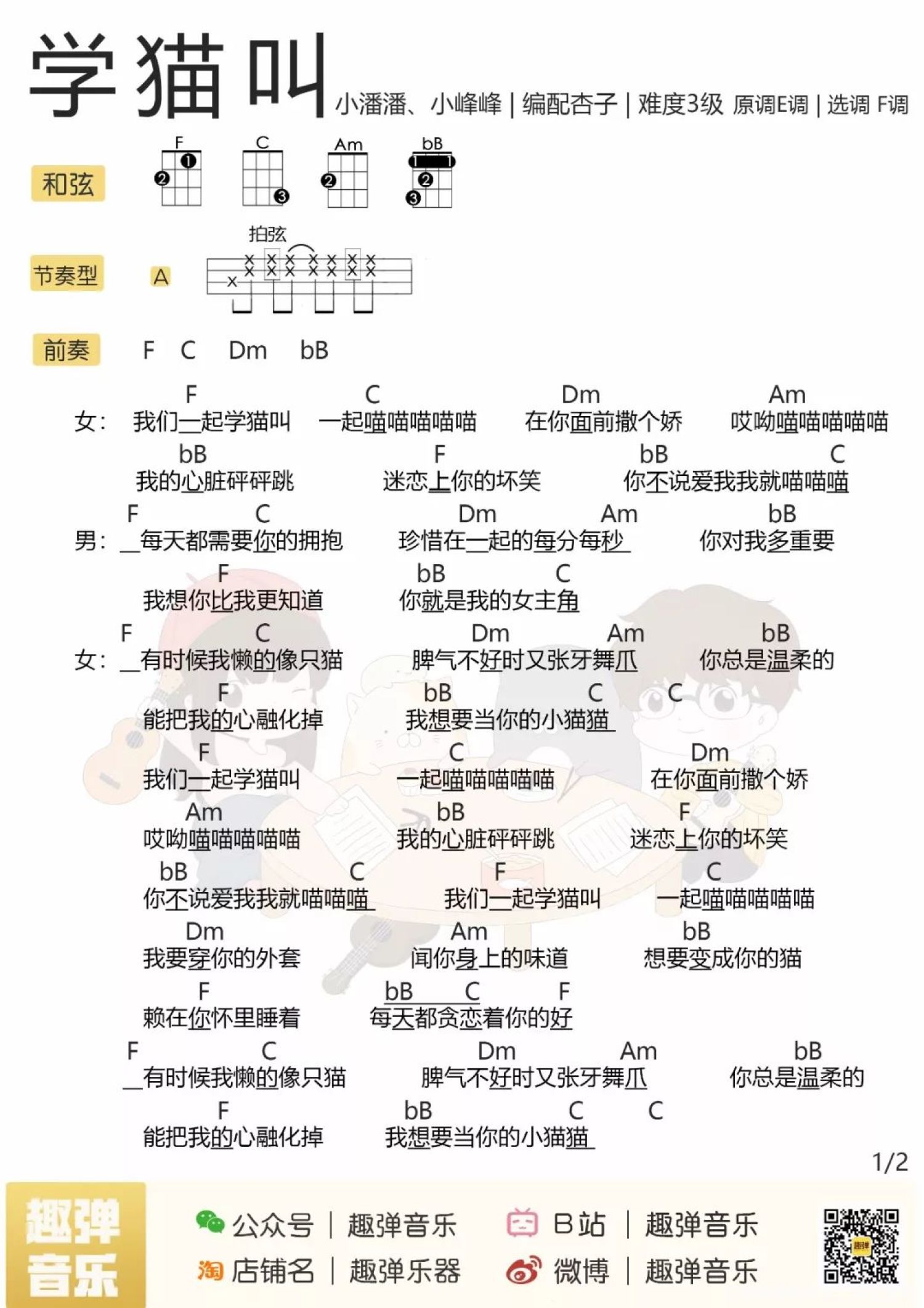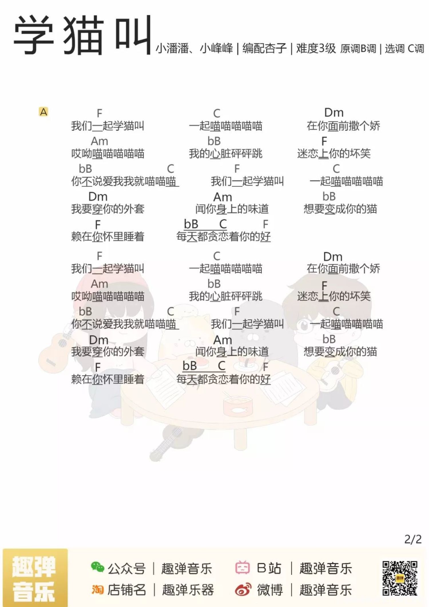 学猫叫尤克里里谱 - 小潘潘小峰峰