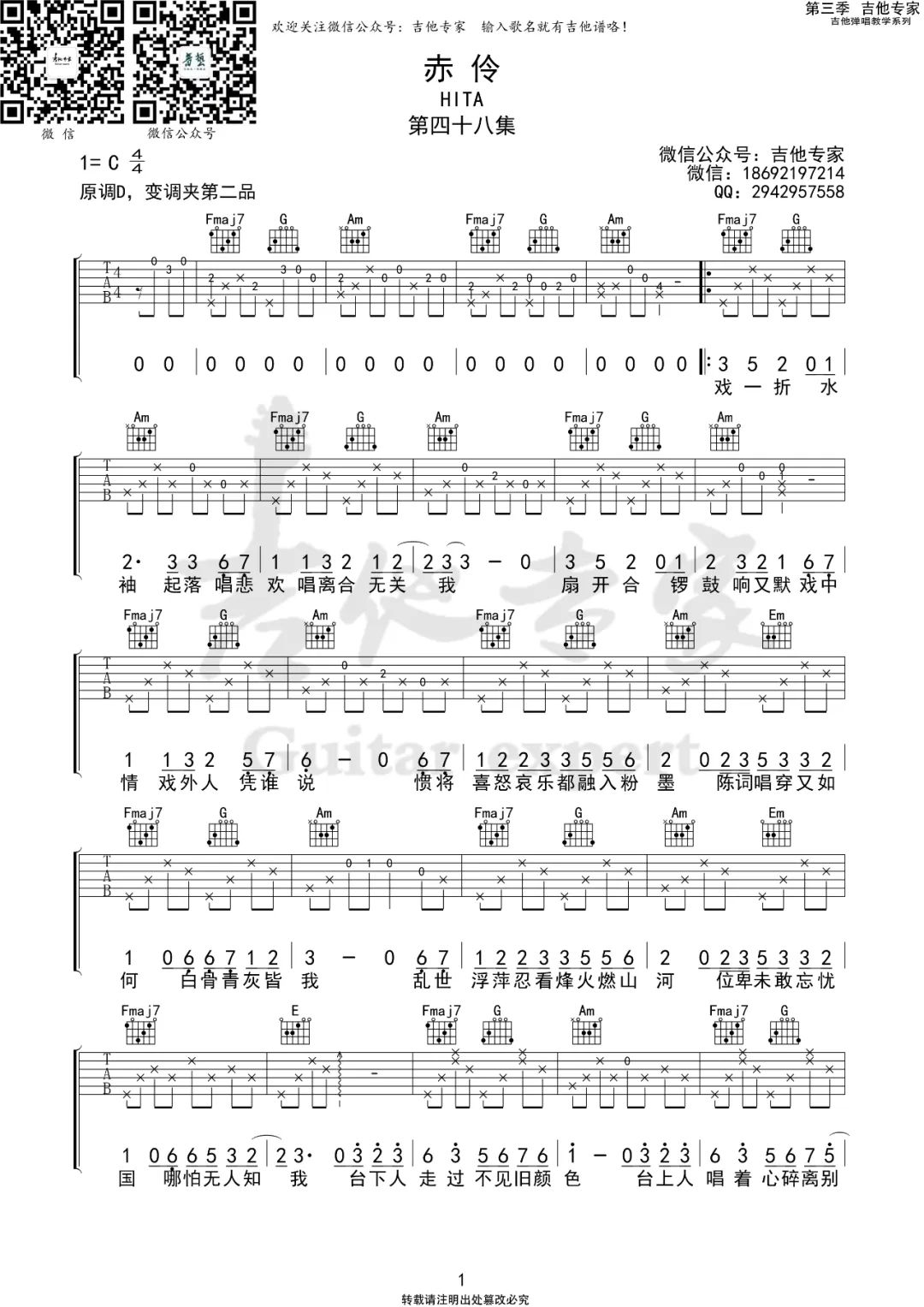 当前位置:琴谱网>吉他弹唱>赤伶