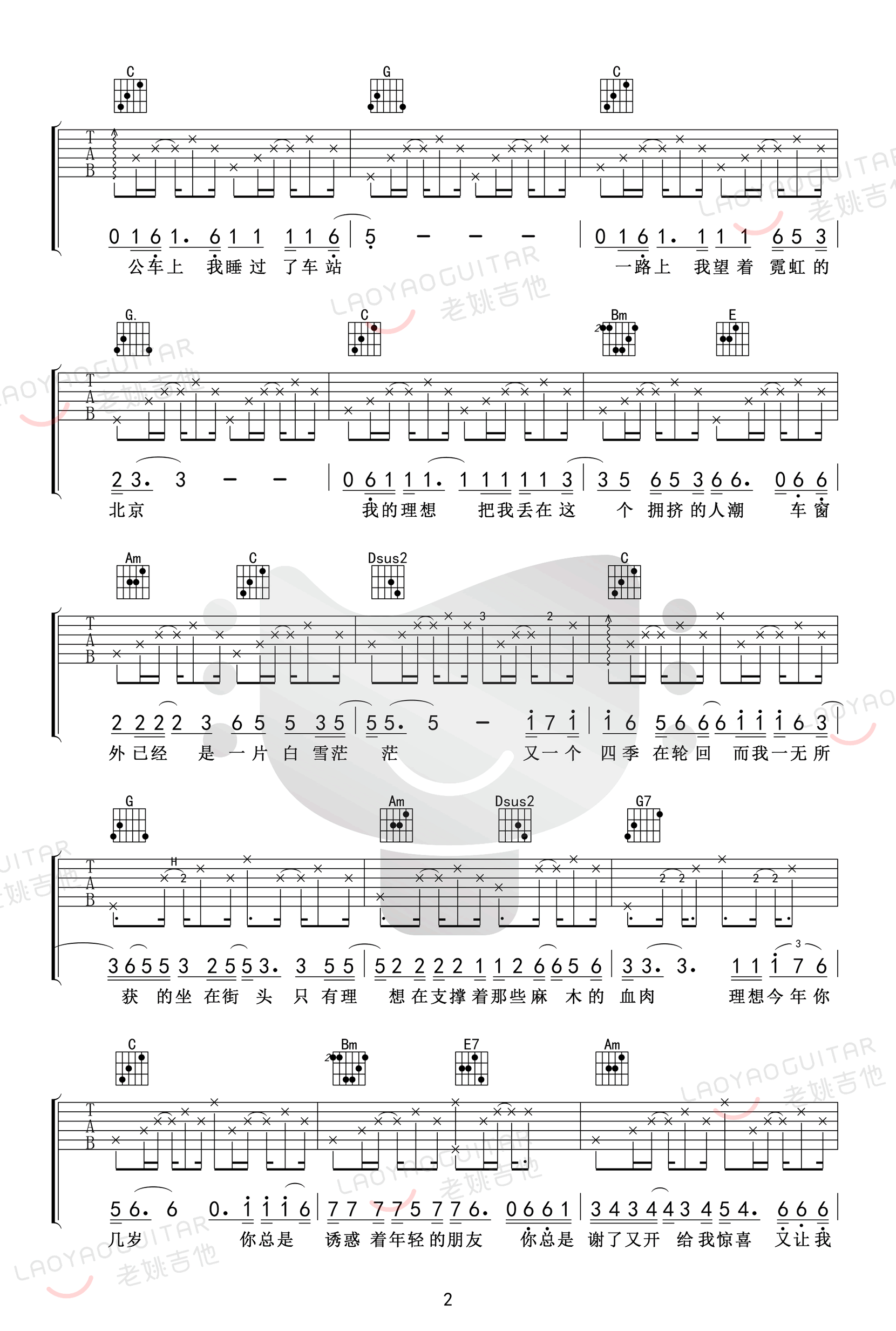 曲谱介绍: 赵雷《理想》吉他弹唱谱,采用G调指法编配原版,共有5张高清图谱。