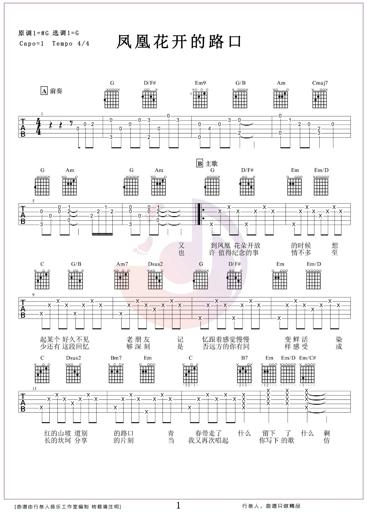 曲谱介绍: 林志炫《凤凰花开的路口》吉他弹唱谱,采用G调指法编配,共有2张高清图谱,免翻页排版设计。