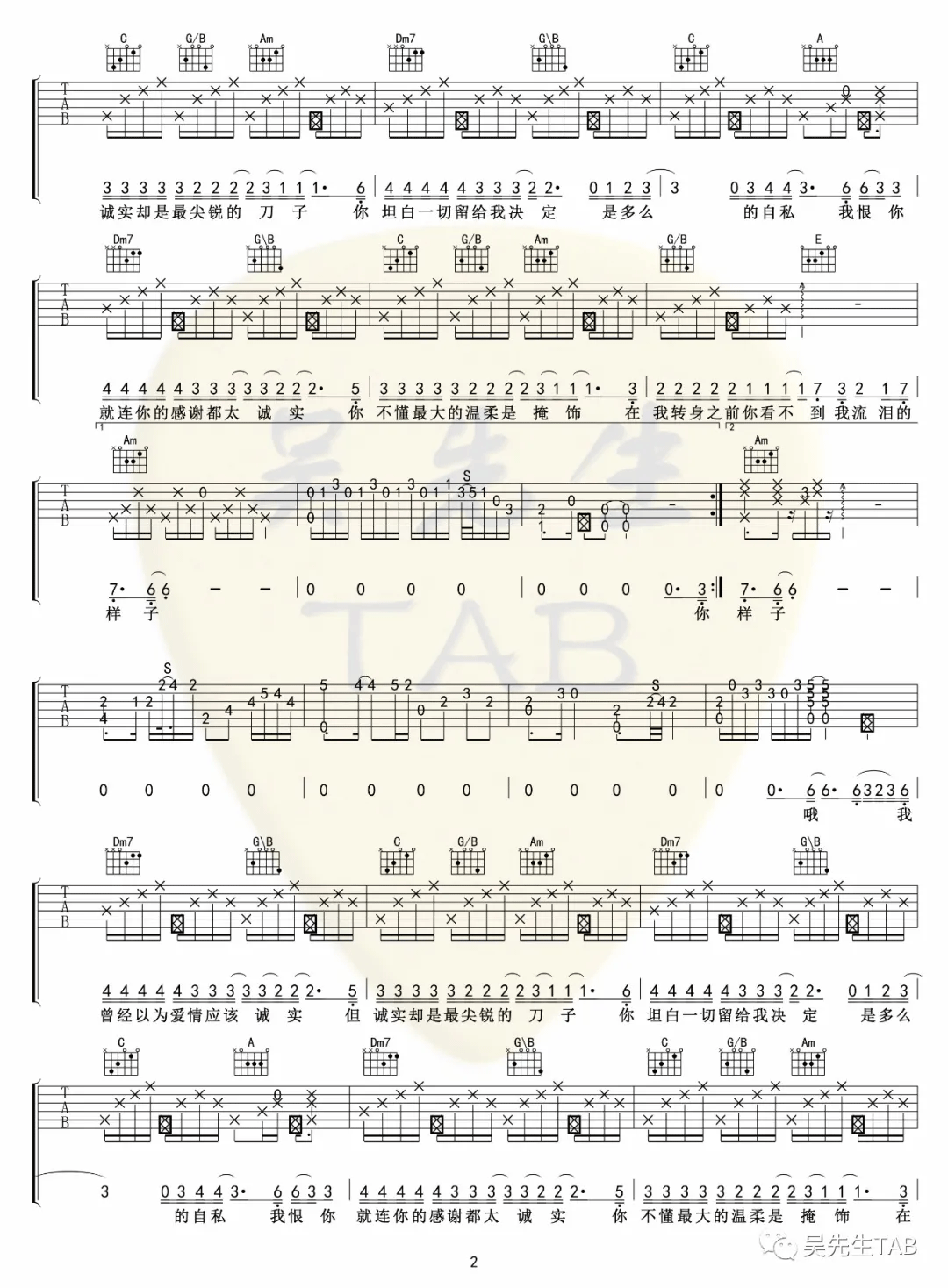 当前位置:琴谱网>吉他弹唱>你太诚实