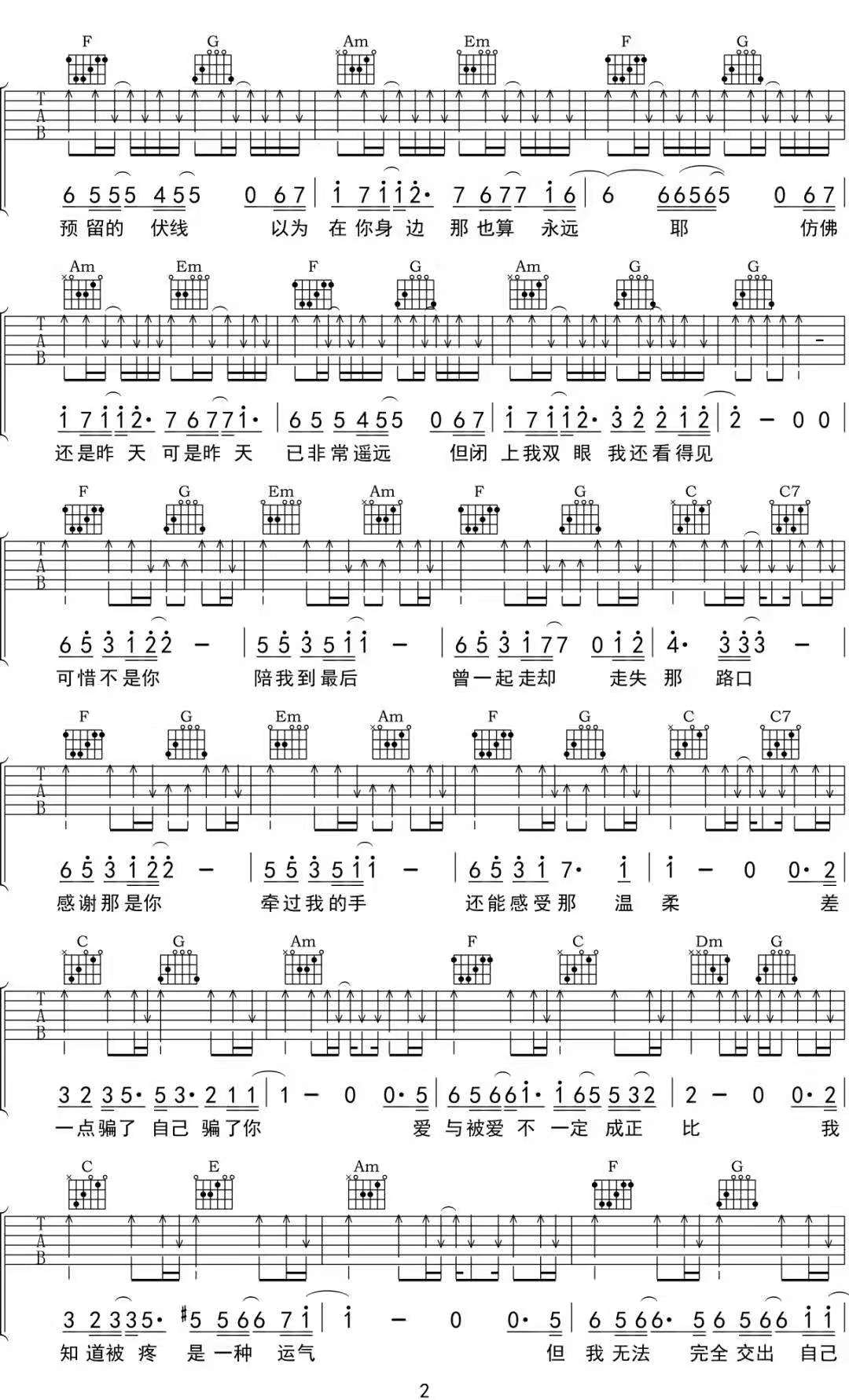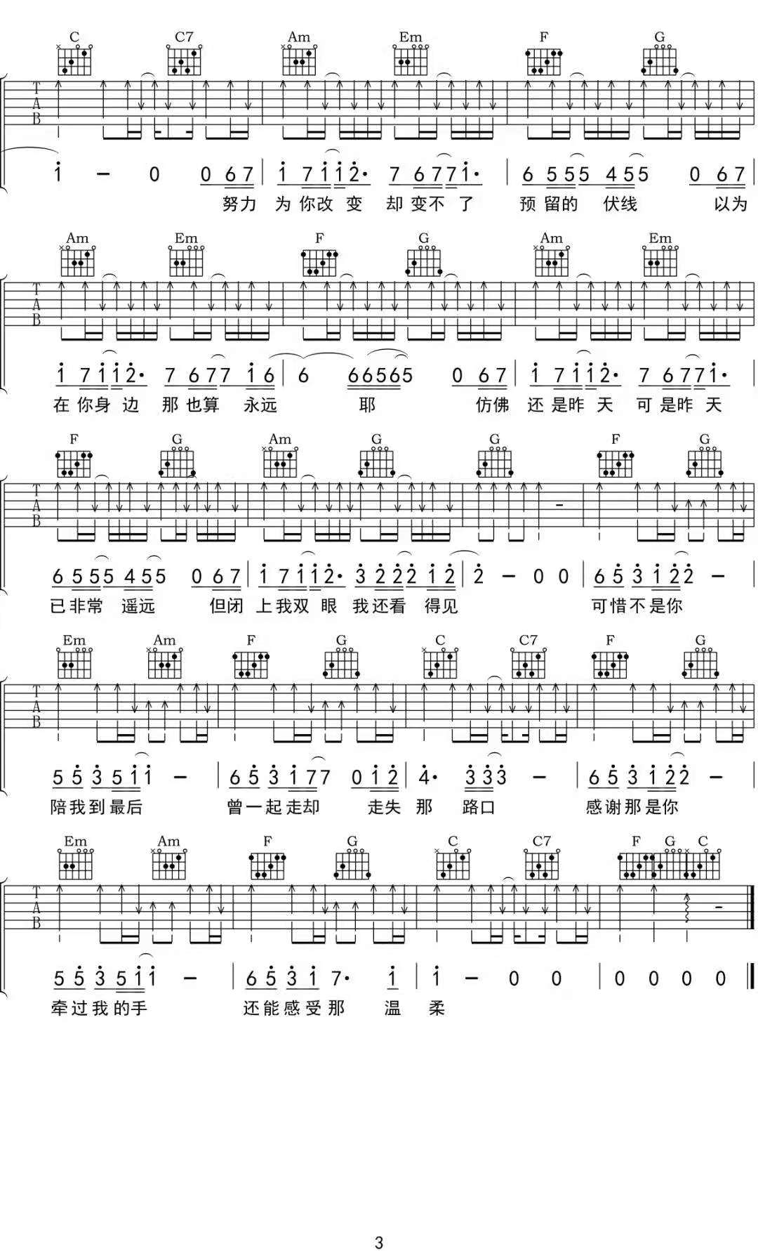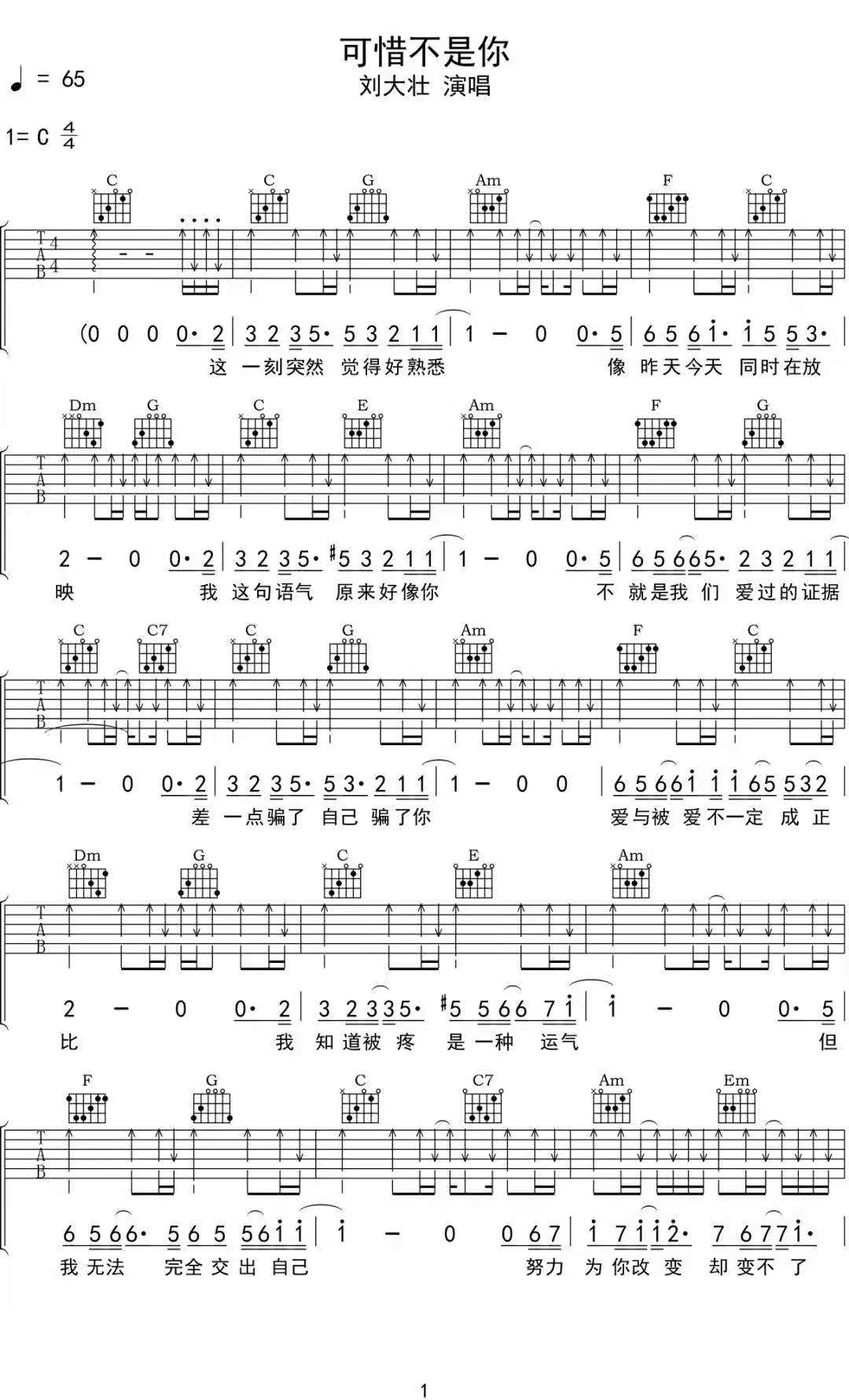 曲谱介绍: 刘大壮《可惜不是你》吉他弹唱谱,采用C调指法编配,共有3张高清图谱。