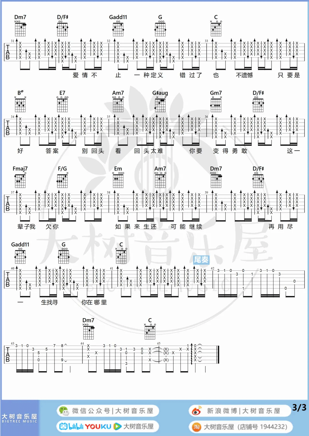 当前位置:琴谱网>吉他弹唱>不遗憾