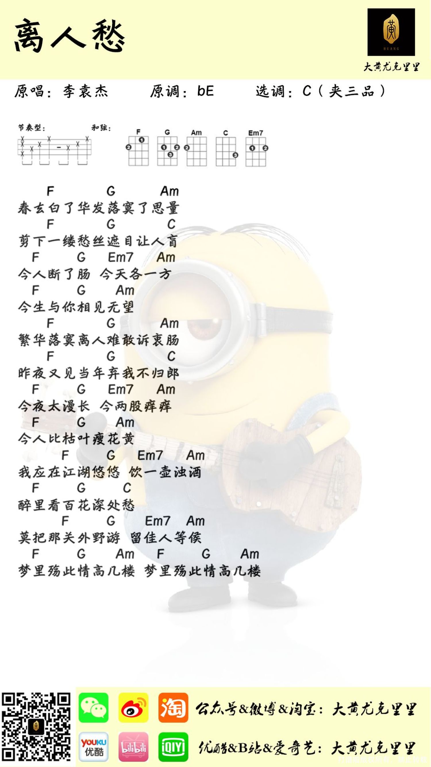 曲谱介绍: 《离人愁》尤克里里谱