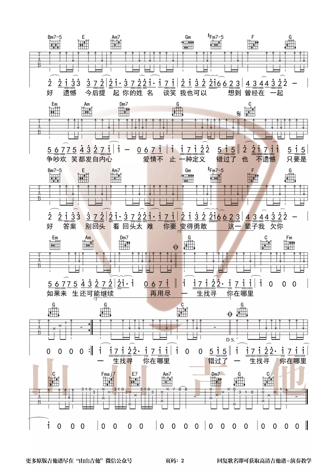 当前位置:琴谱网>吉他弹唱>不遗憾