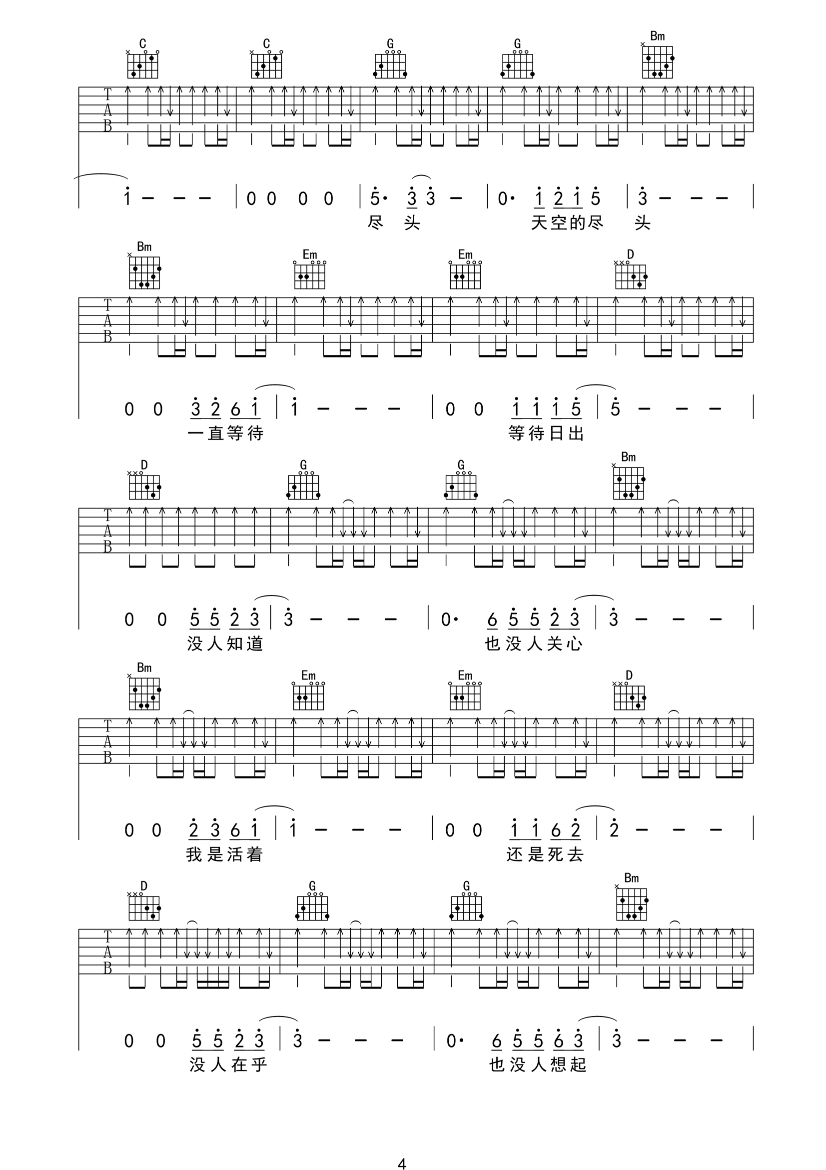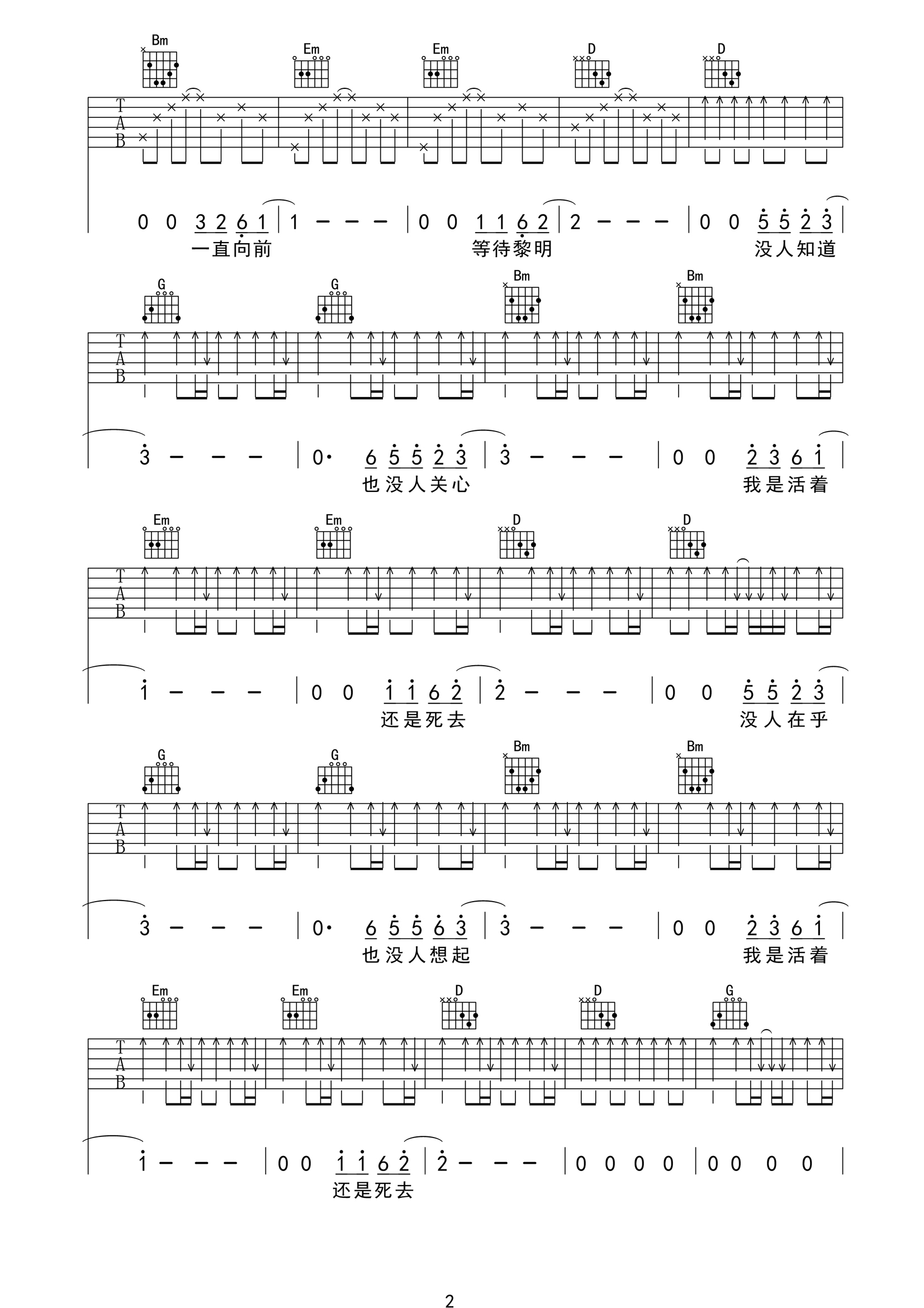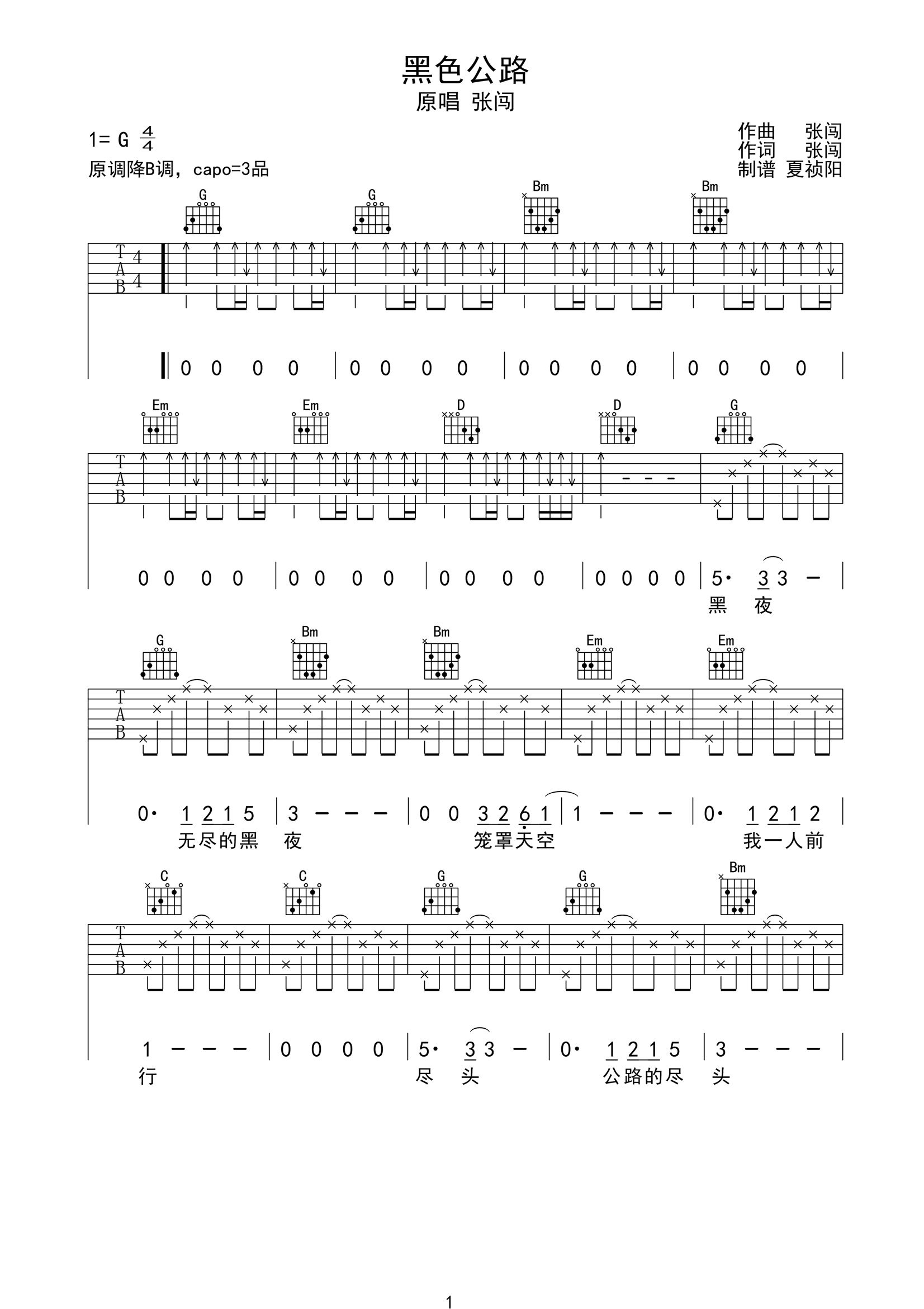 曲谱介绍: 张闯《黑色公路》吉他弹唱谱,采用G调指法编配原版,共有6张高清图谱。