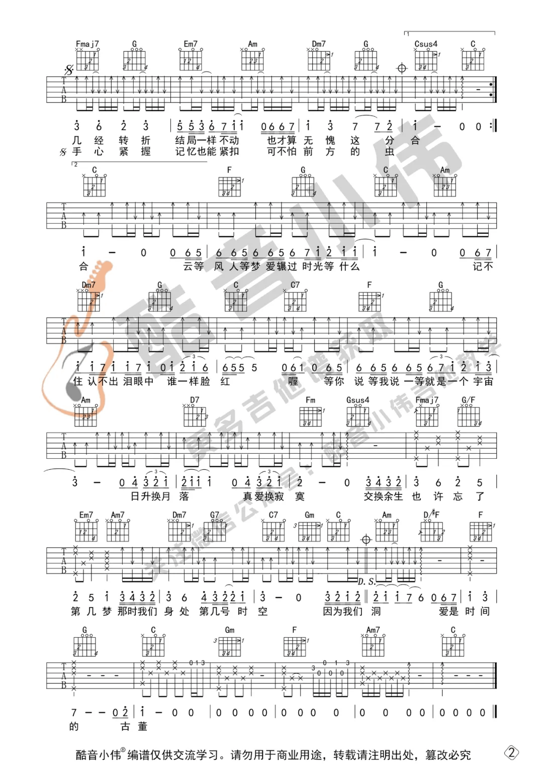 当前位置:琴谱网>吉他弹唱>交换余生