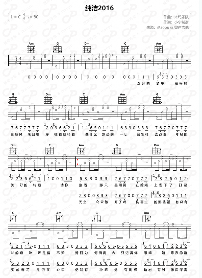 纯洁2016吉他谱 - 木马乐队 - C调吉他弹唱谱