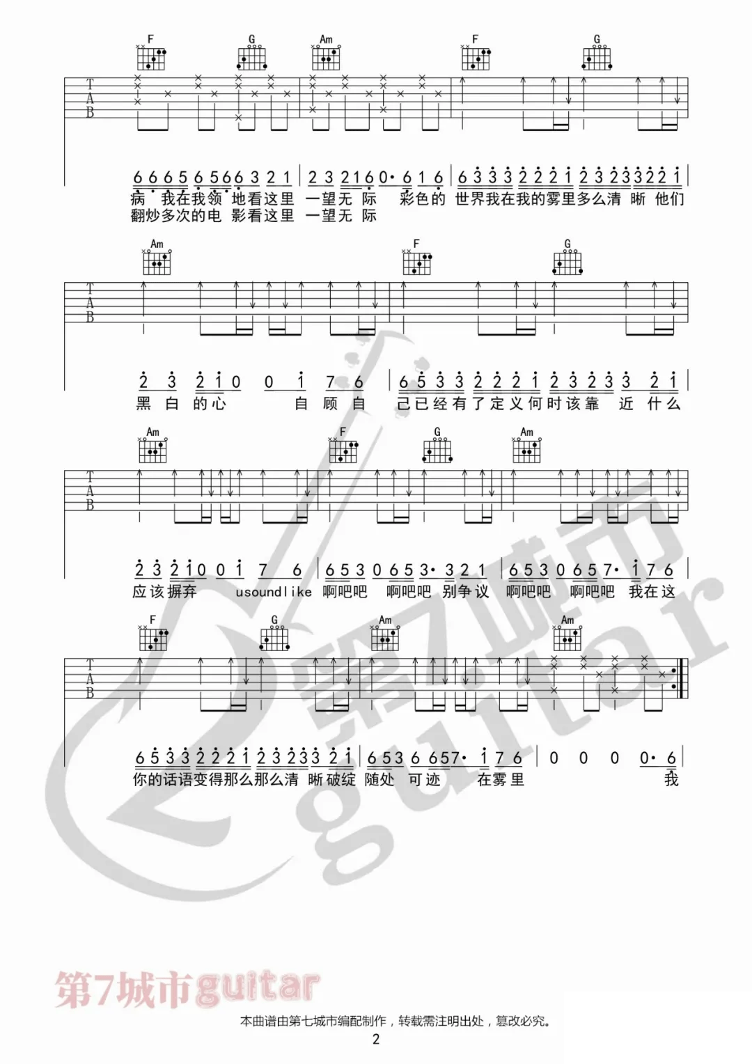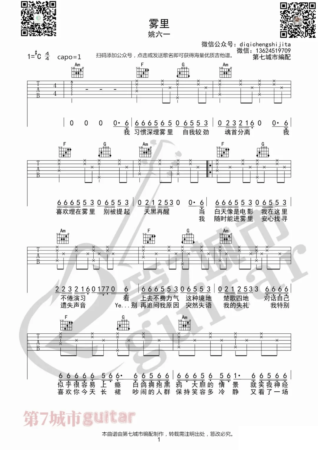 雾里吉他谱 - 姚六一 - C调吉他弹唱谱 - 原版