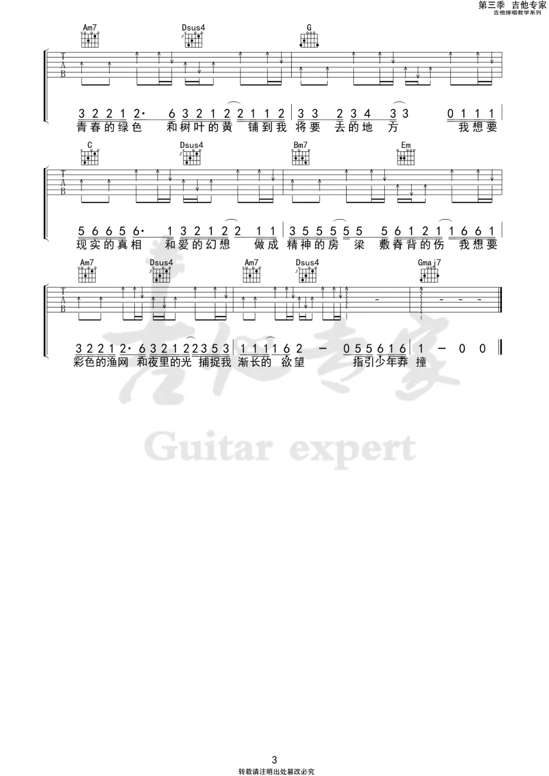 曲谱介绍: 盖君炎《我想要》吉他弹唱谱,采用G调指法编配原版,共有3张高清图谱。