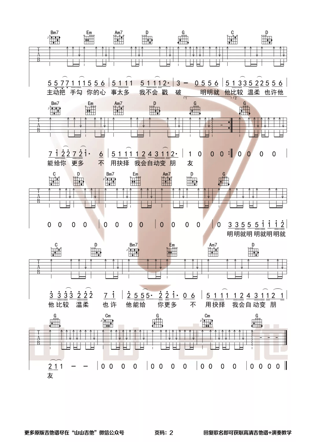 曲谱介绍: 周杰伦《明明就》吉他弹唱谱,采用C调指法编配原版,共有2张高清图谱,免翻页排版设计。