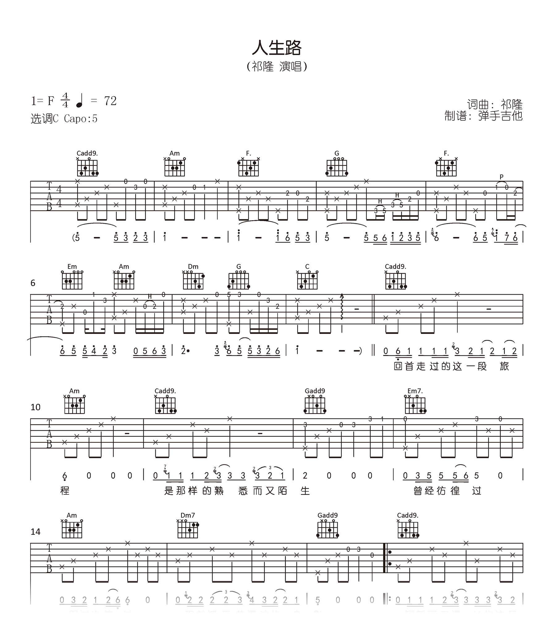 人生路吉他谱 - 祁隆 - C调吉他弹唱谱