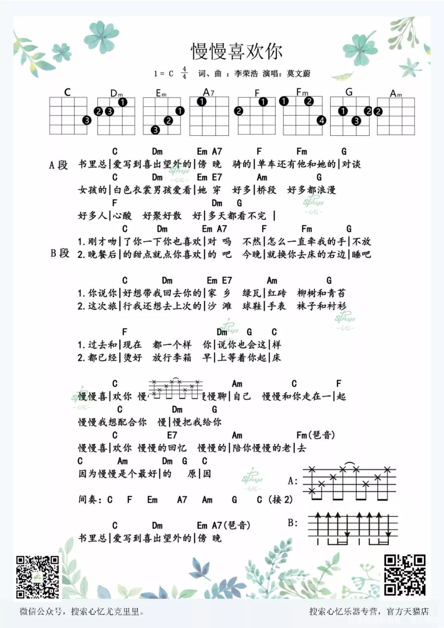 当前位置:琴谱网>尤克里里>慢慢喜欢你