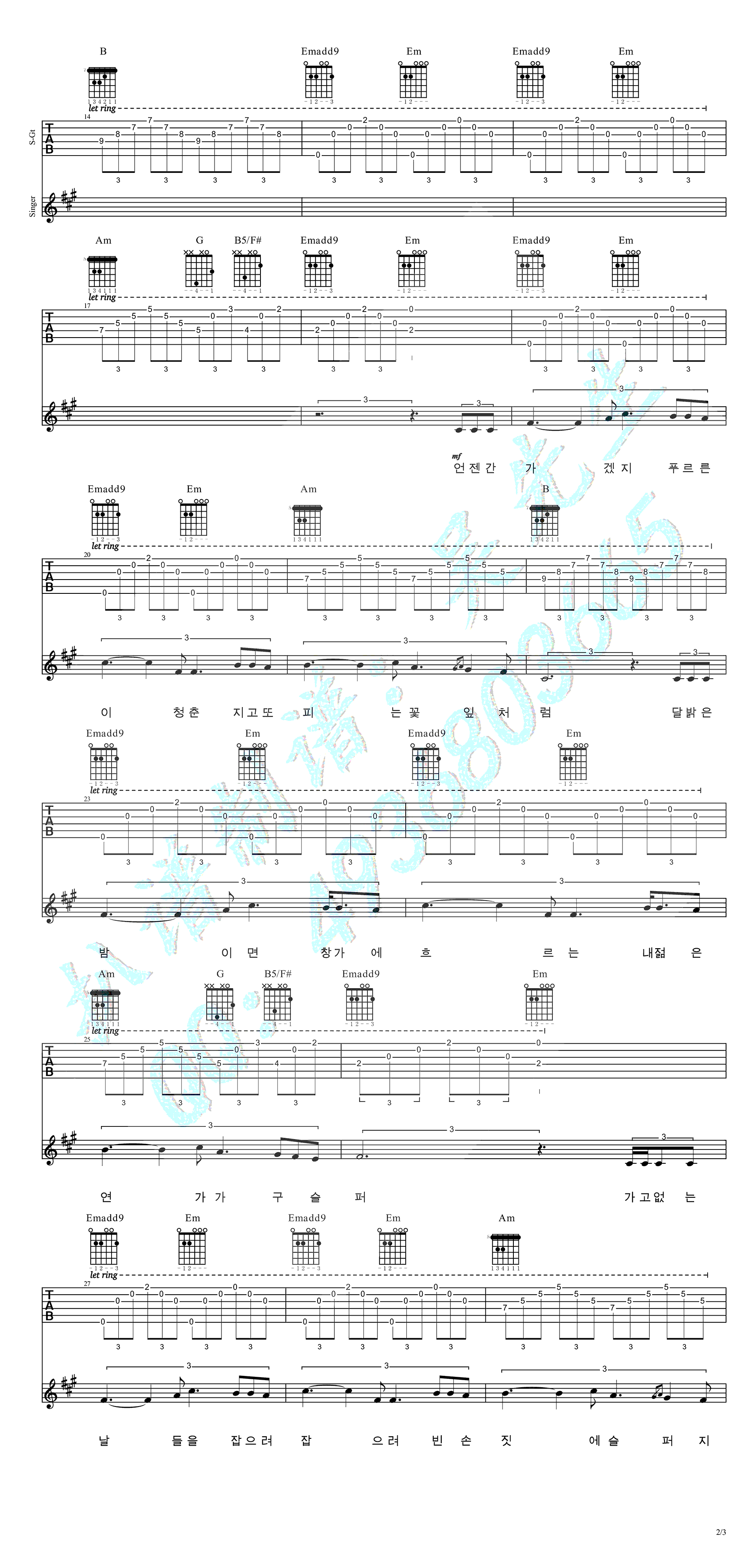 曲谱介绍: 金必/金昌完《青春》吉他弹唱谱,采用G调指法编配原版,共有3张高清图谱。