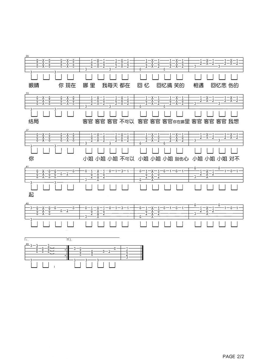 曲谱介绍: 徐良/小凌《客官不可以》吉他弹唱谱,采用C调指法编配,共有2张高清图谱,免翻页排版设计。