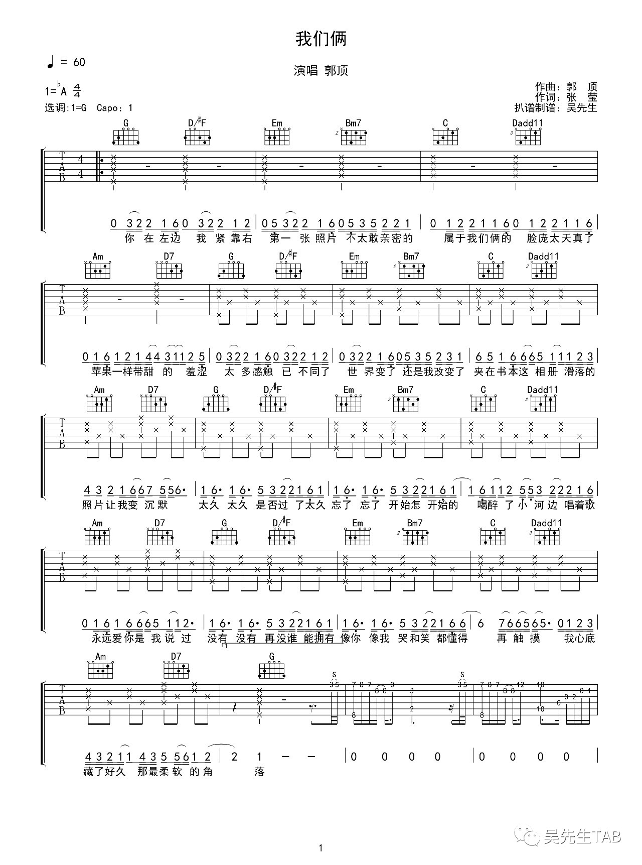 我们俩吉他谱 - 郭顶 - G调吉他弹唱谱