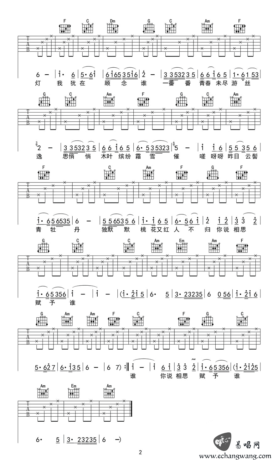 当前位置:琴谱网>吉他弹唱>相思赋予谁