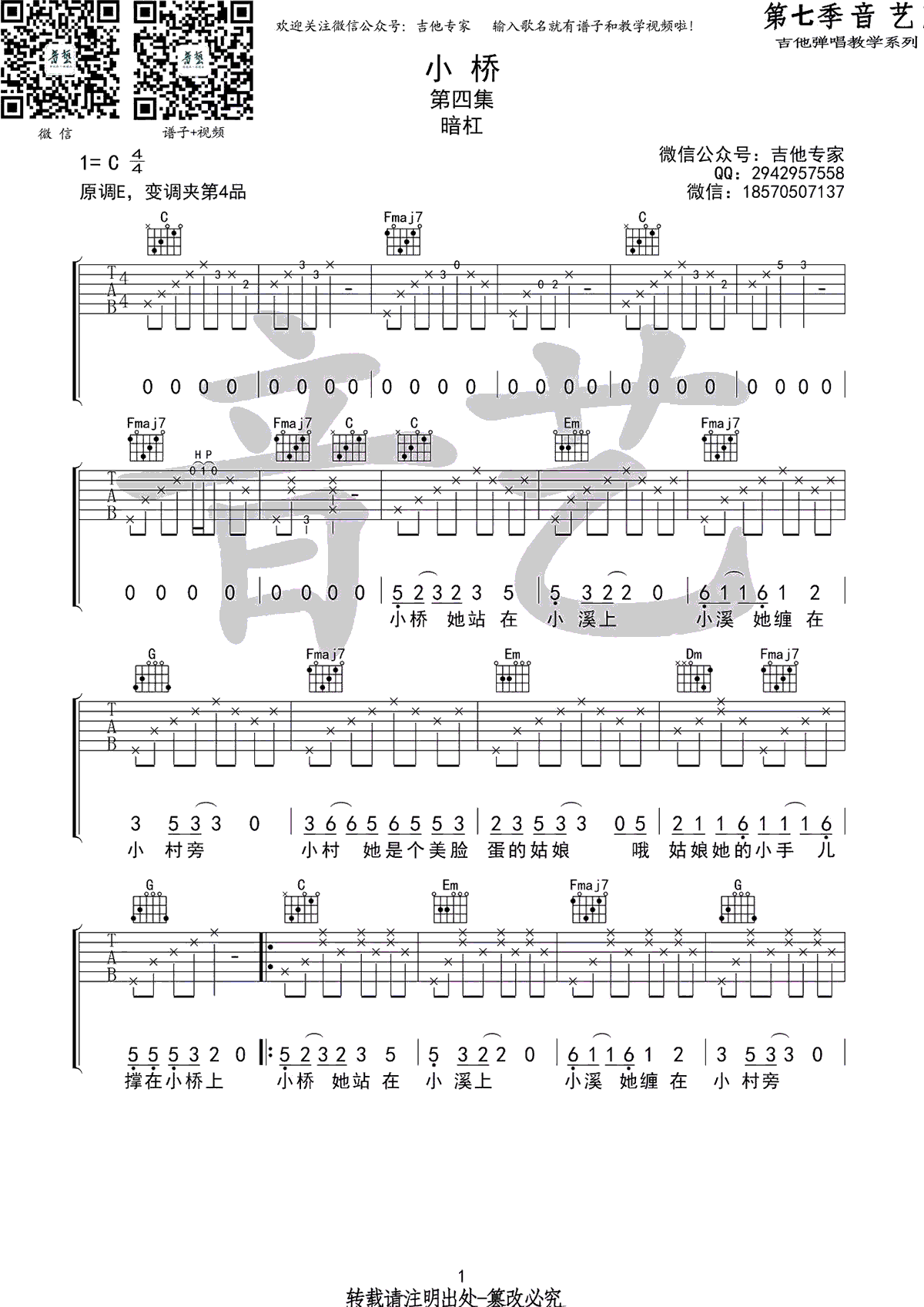 小桥吉他谱 - 暗杠 - C调吉他弹唱谱