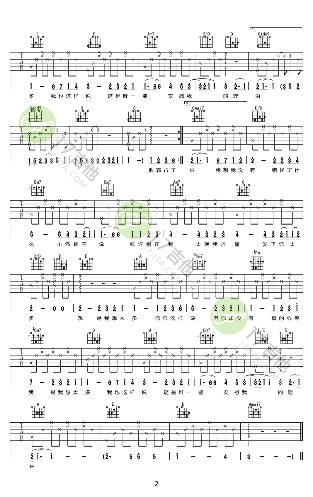 当前位置:琴谱网>吉他弹唱>想太多