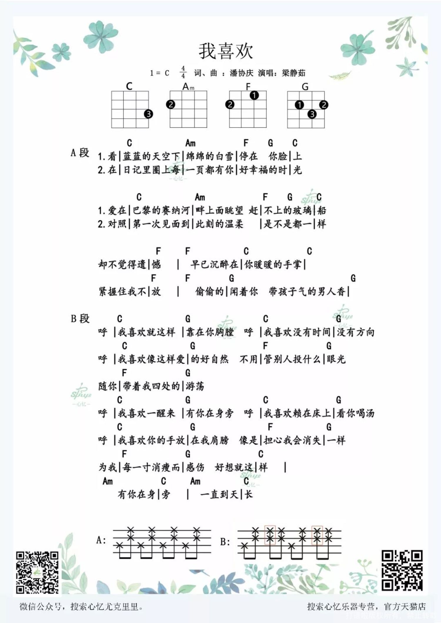 我喜欢尤克里里谱 - 上海彩虹合唱团