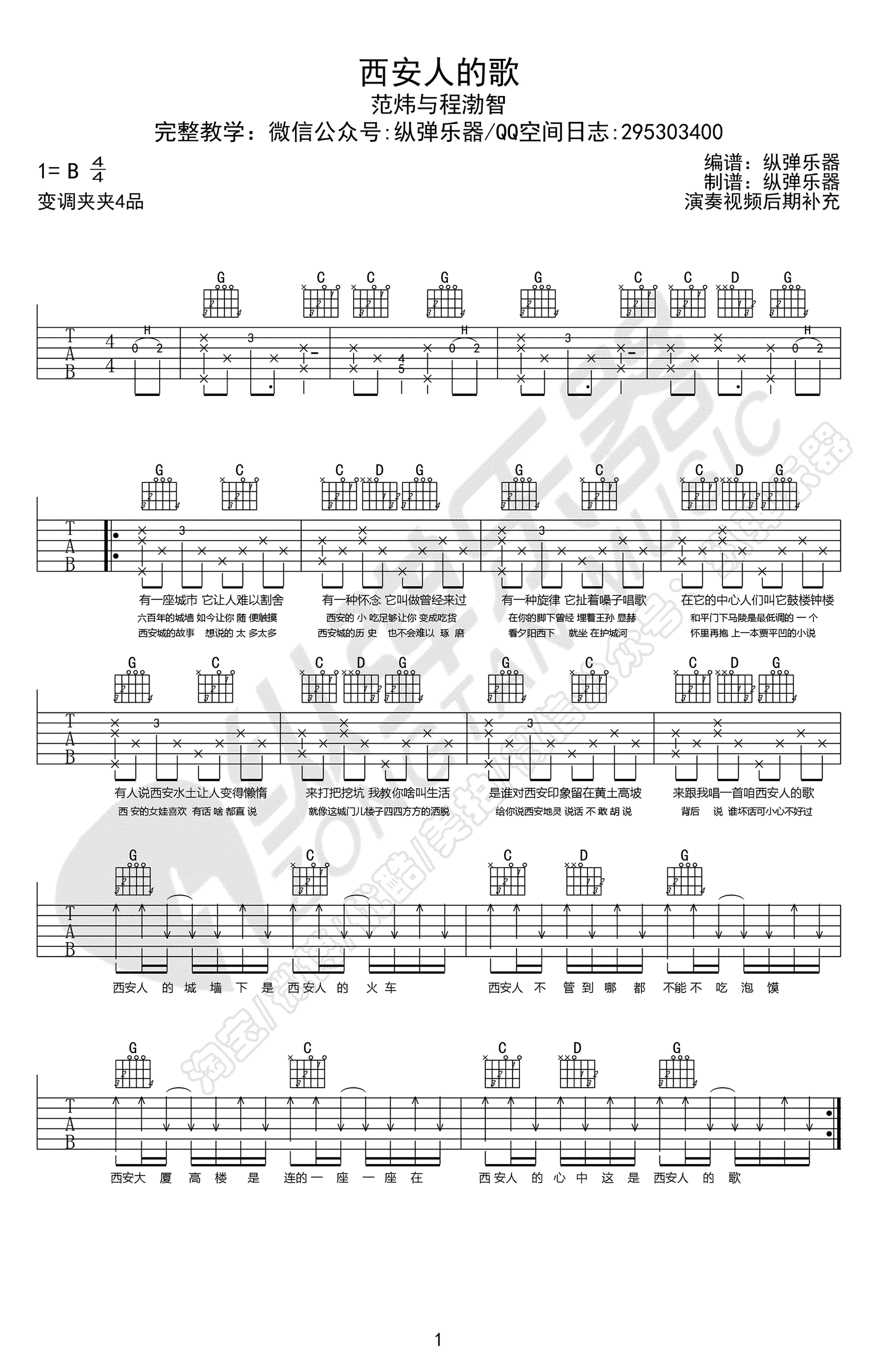 西安人的歌吉他谱 - 范炜与程渤智 - G调吉他弹唱谱
