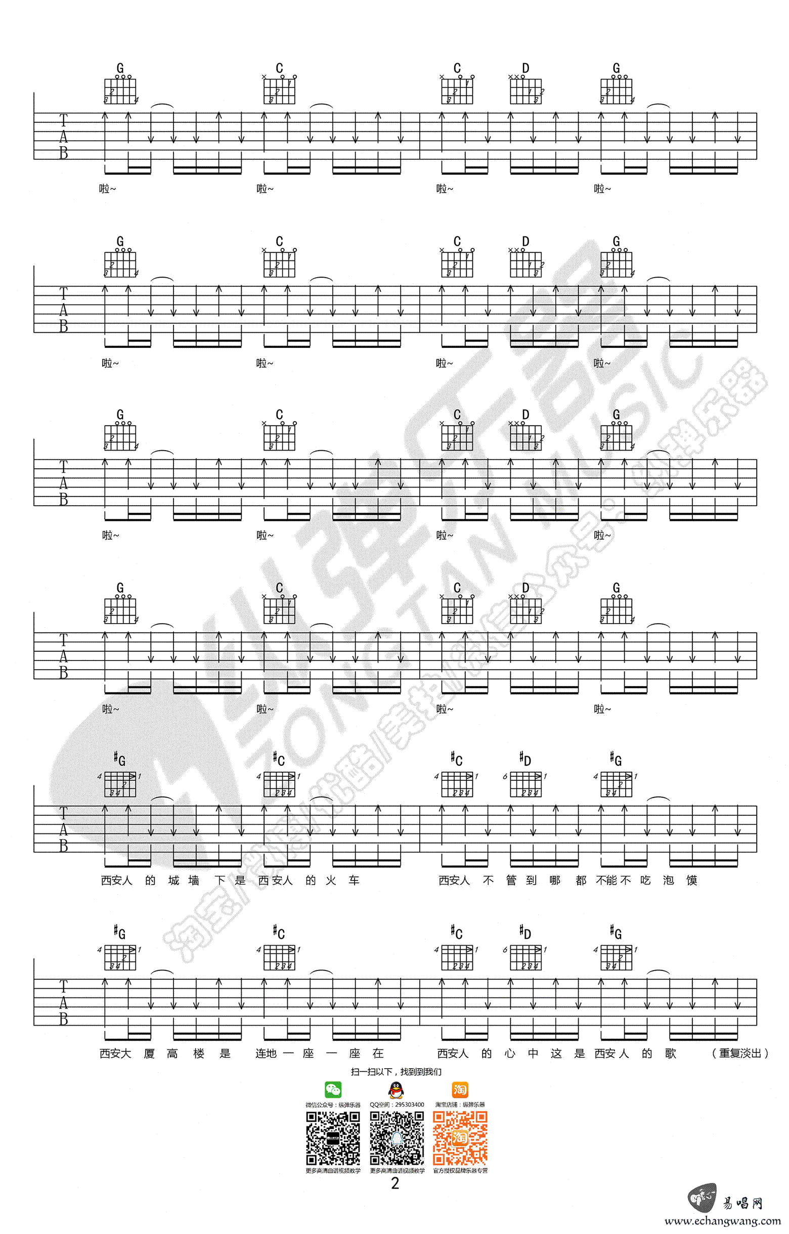 当前位置:琴谱网>吉他弹唱>西安人的歌