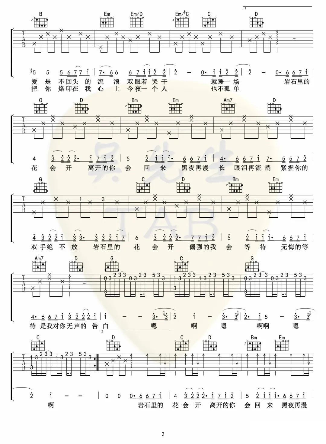 当前位置:琴谱网>吉他弹唱>岩石里的花