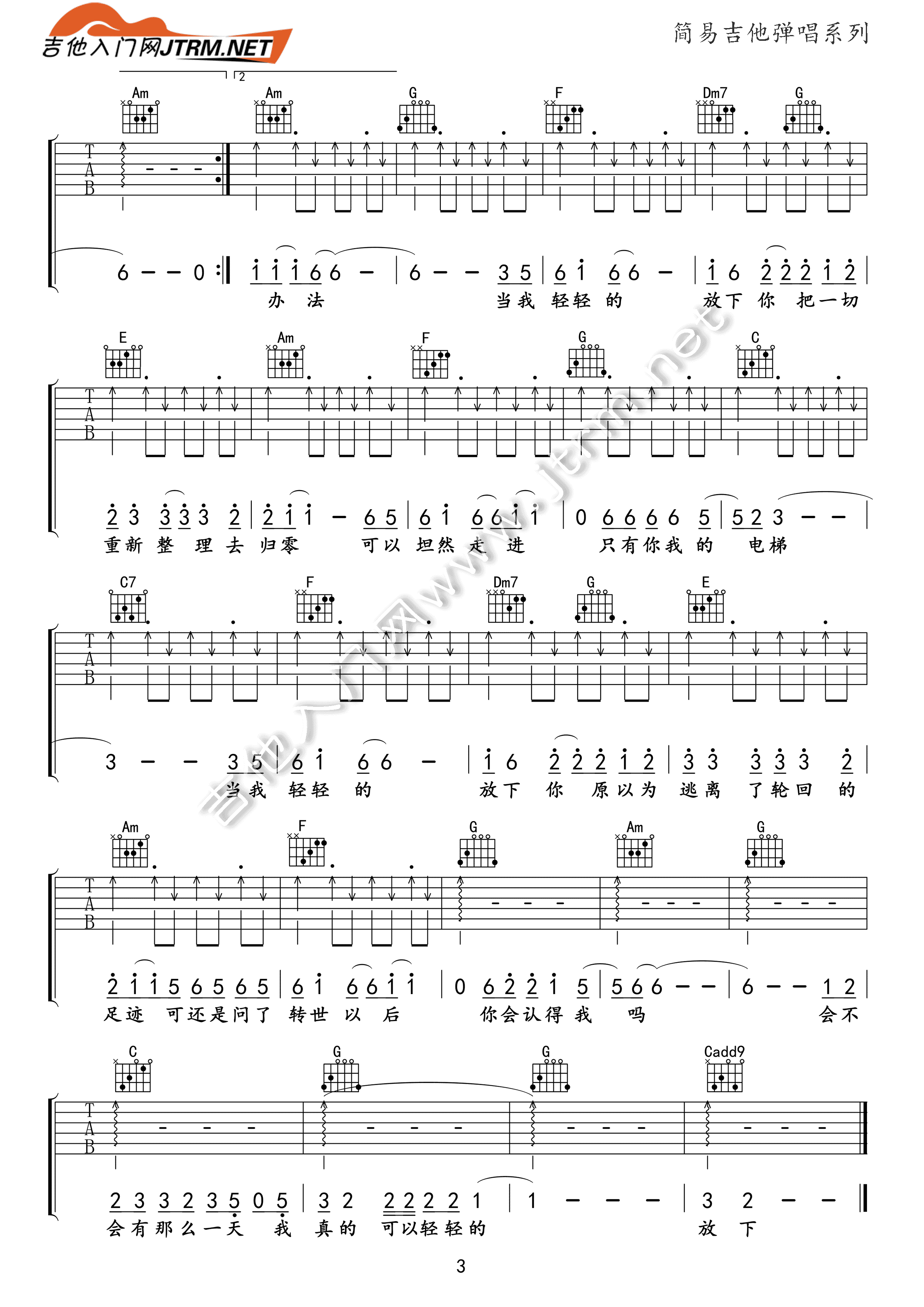 当前位置:琴谱网>吉他弹唱>轻轻的放下
