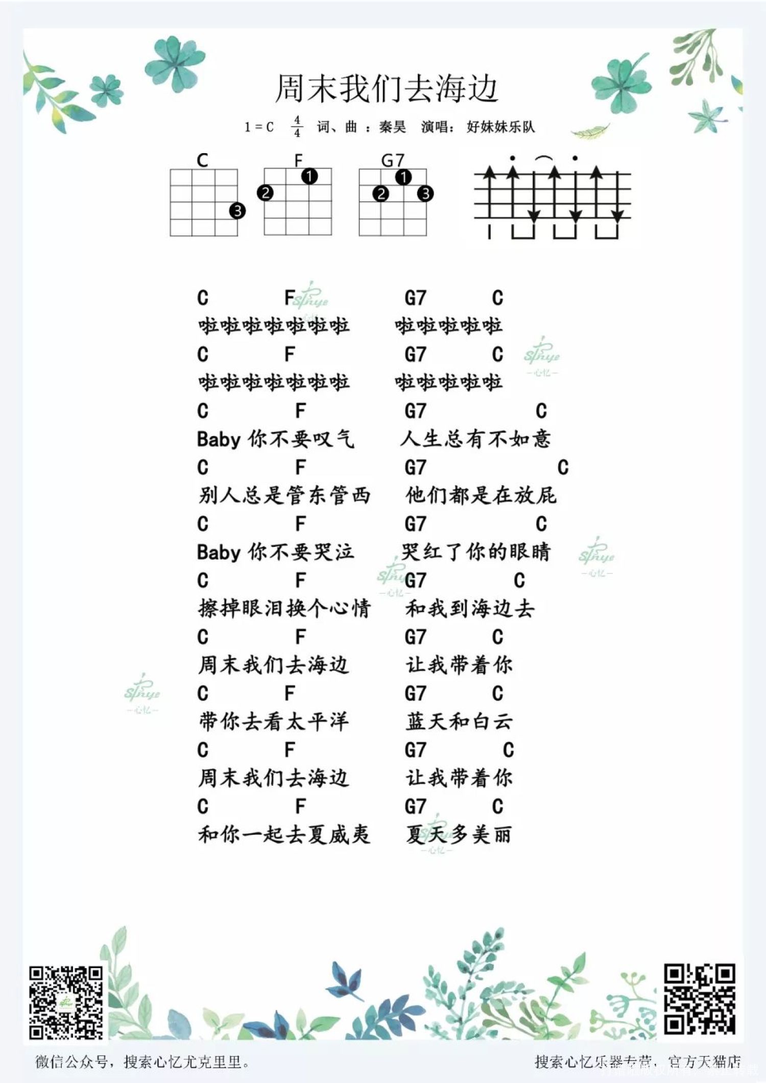 曲谱介绍: 《周末我们去海边》尤克里里谱