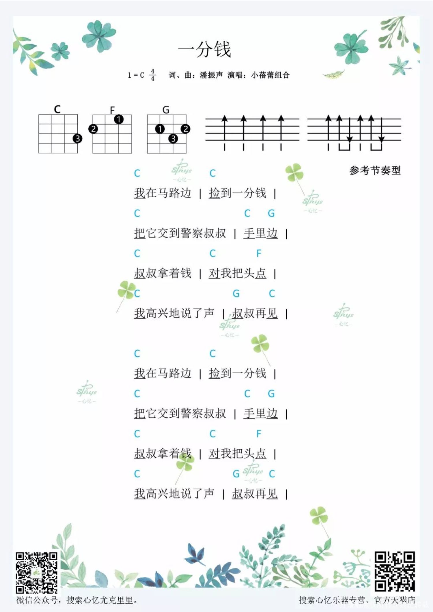 曲谱介绍: 《一分钱》尤克里里教学   《一分钱》尤克里里谱