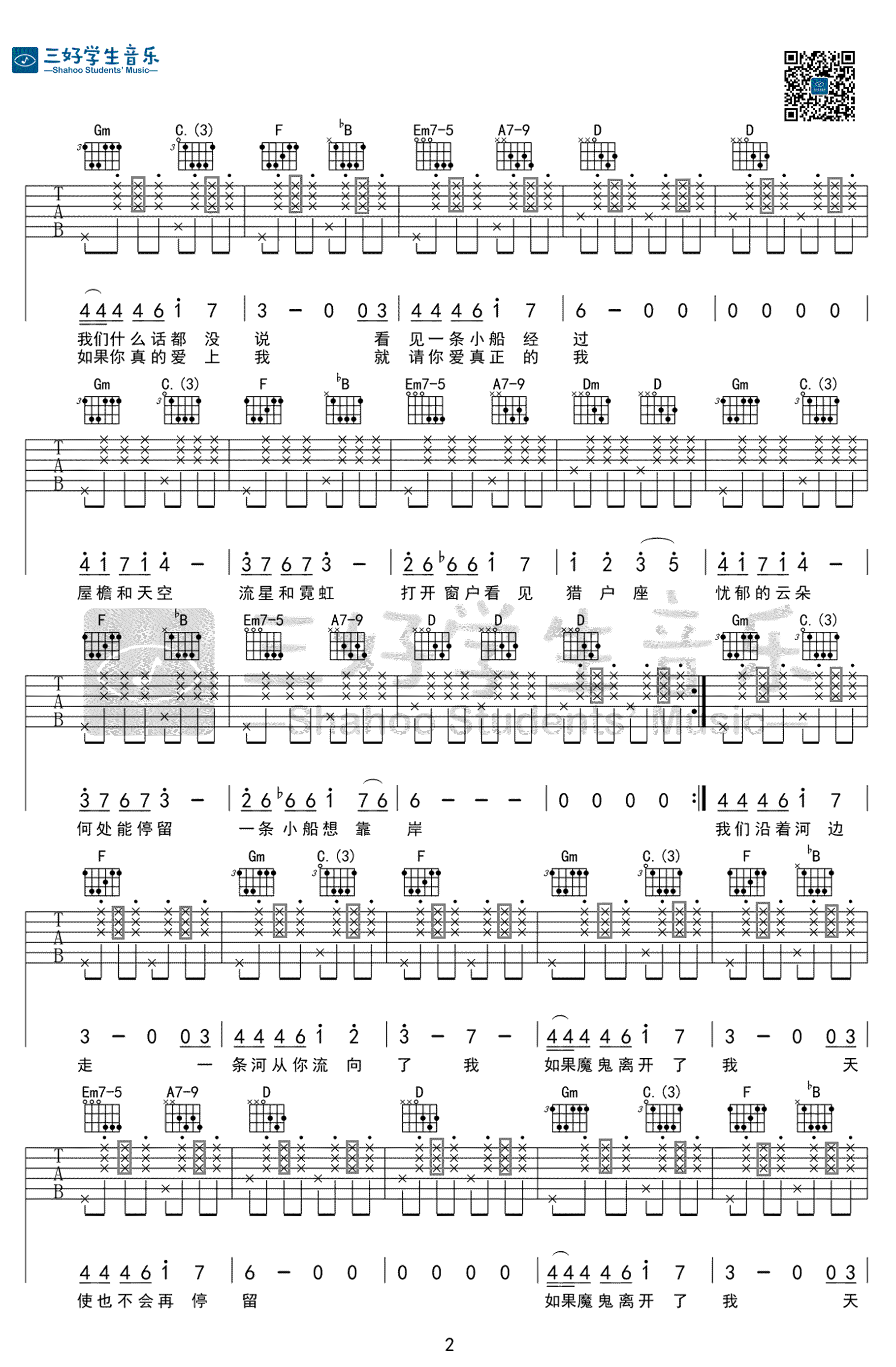 曲谱介绍: 陈绮贞《小船》吉他弹唱谱,采用F调指法编配,共有3张高清图谱。