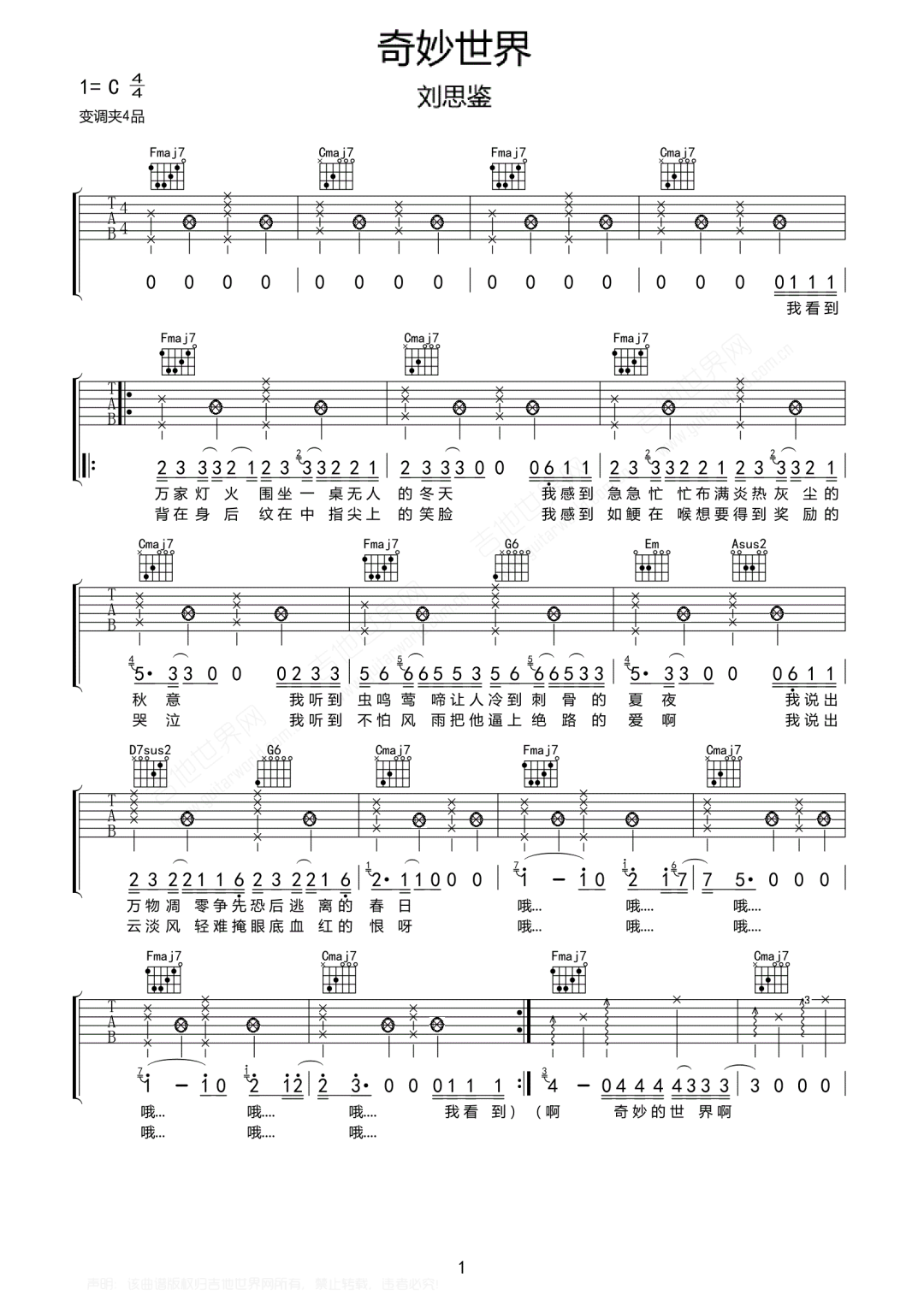 奇妙世界吉他谱 - 刘思鉴 - C调吉他弹唱谱