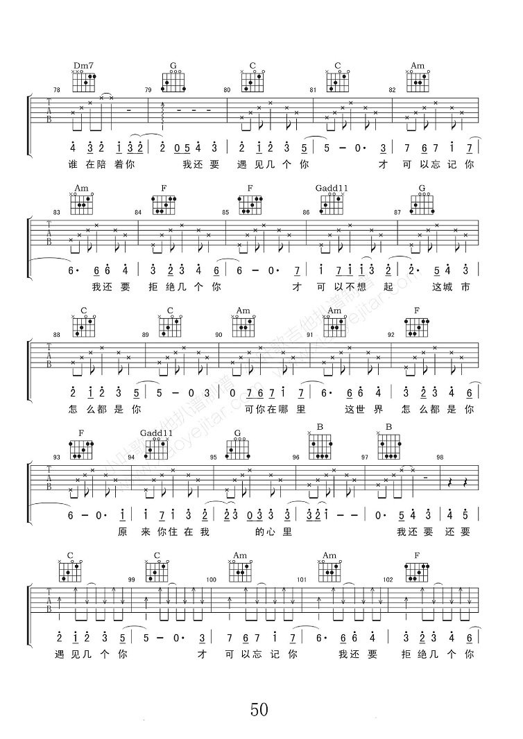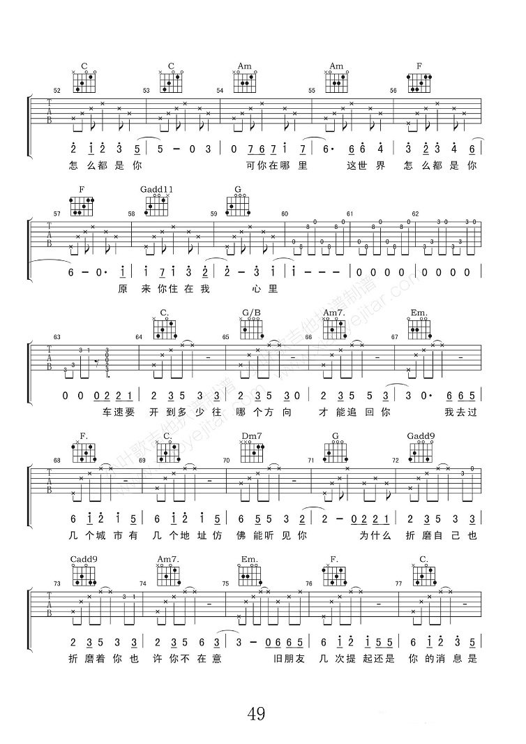 当前位置:琴谱网>吉他弹唱>几个你
