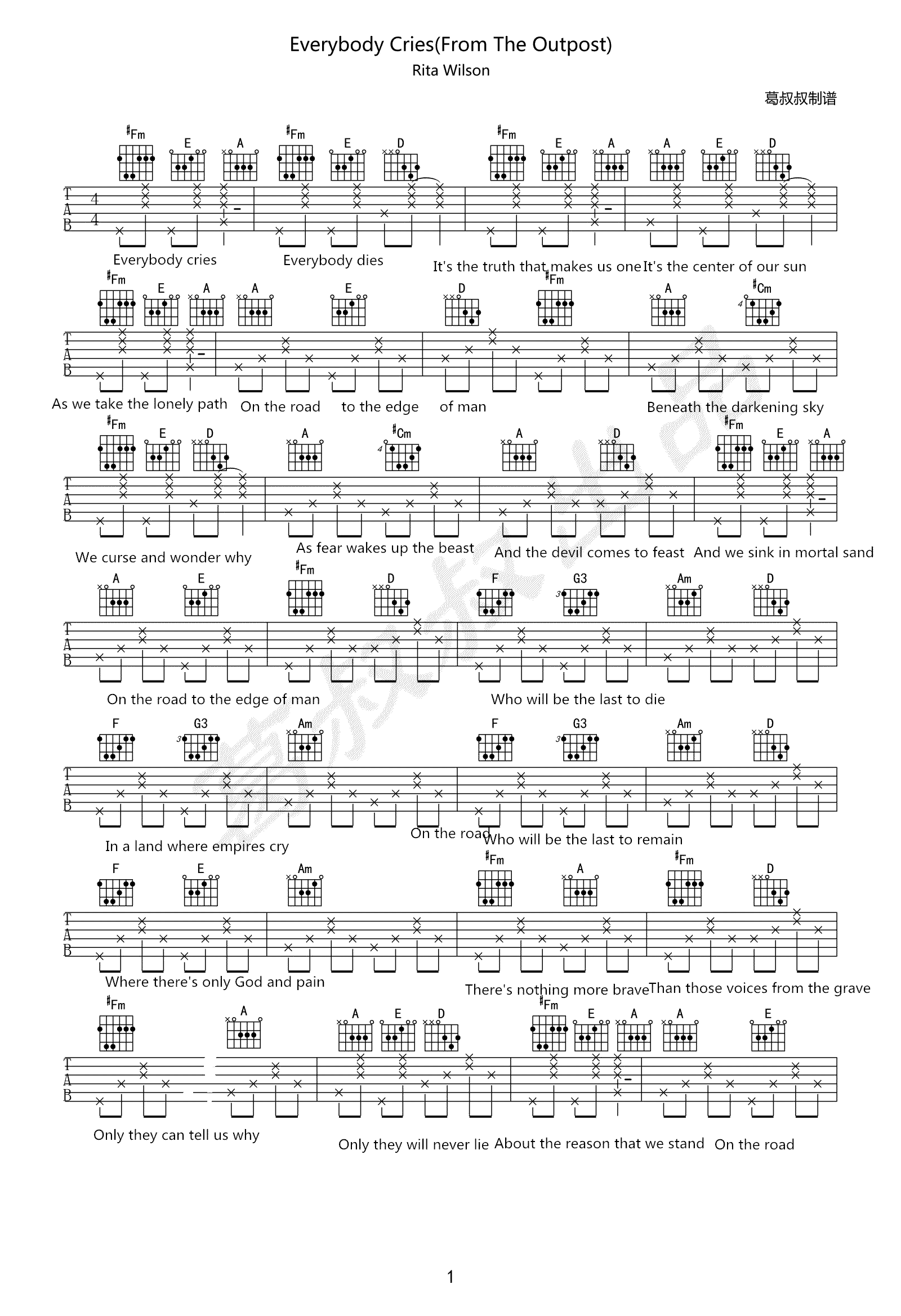 当前位置:琴谱网>吉他弹唱>Everybody Cries