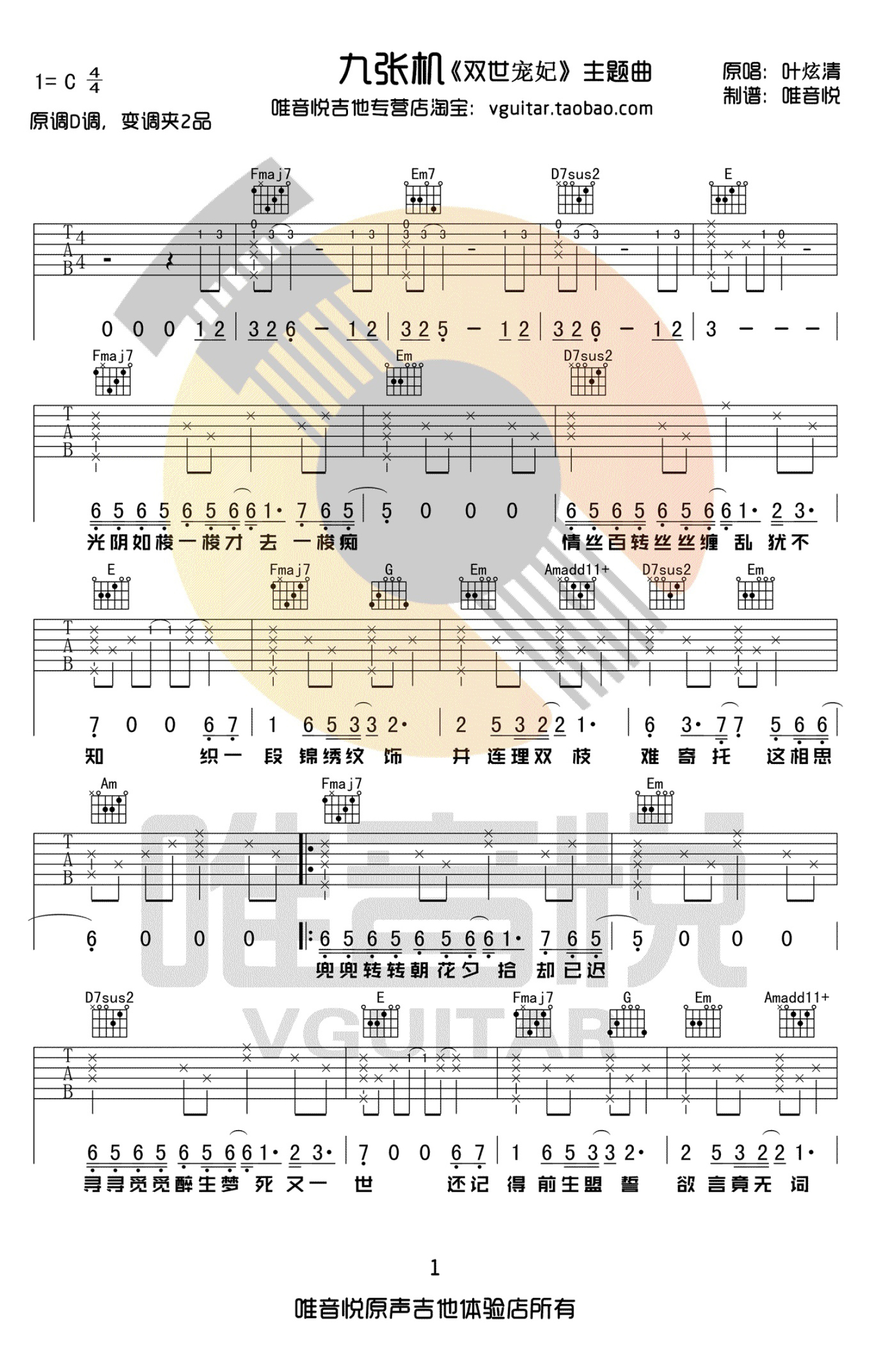 九张机吉他谱 - 叶炫清 - C调吉他弹唱谱