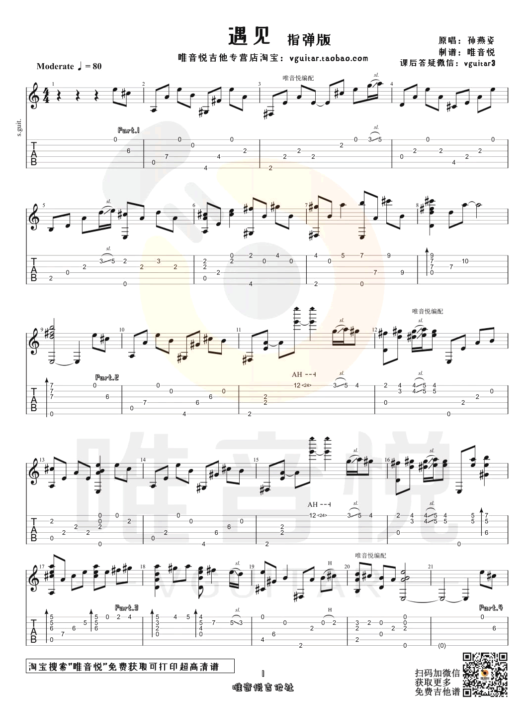 曲谱介绍: 孙燕姿《遇见》吉他独奏谱,共有3张高清图谱。