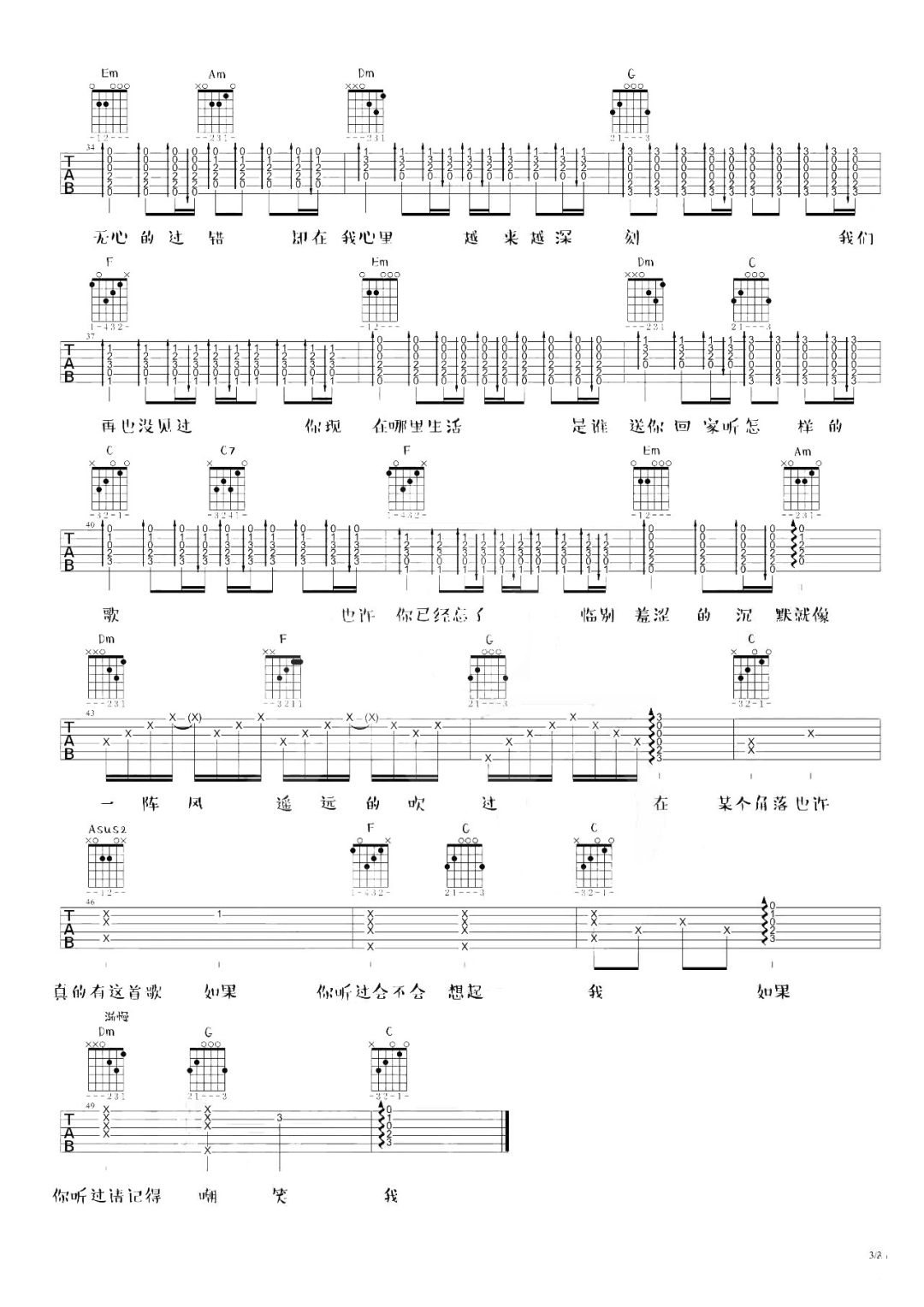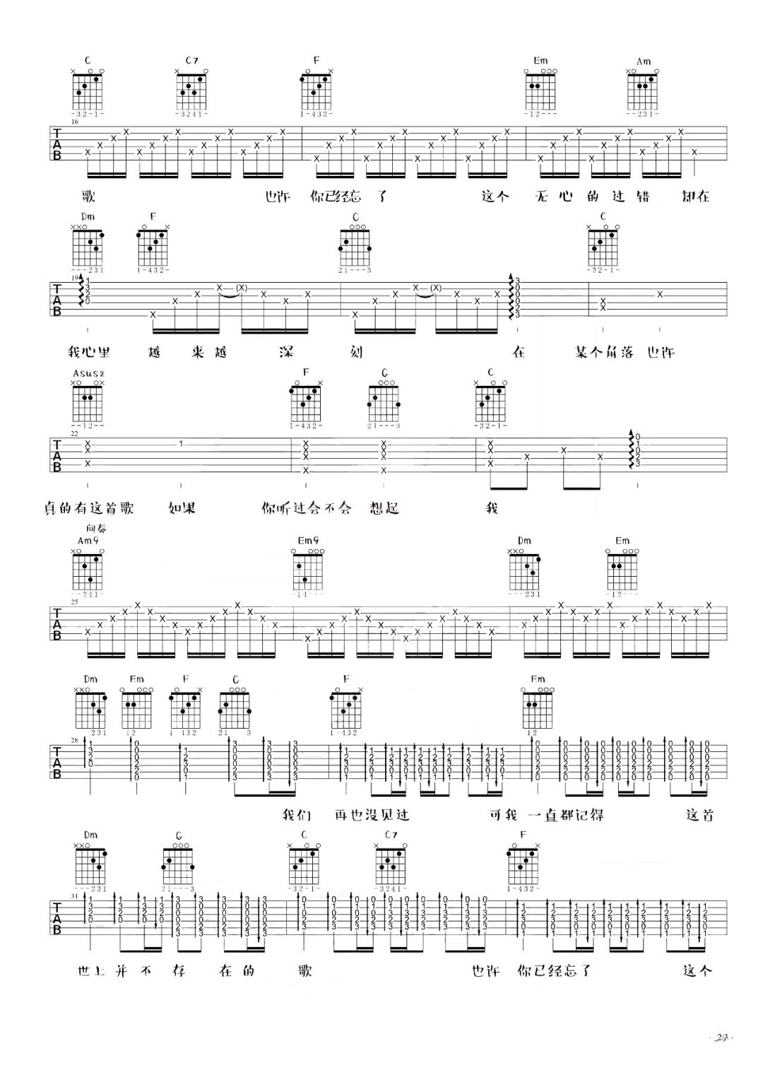 曲谱介绍: 赵英俊《世界上不存在的歌》吉他弹唱谱,采用C调指法编配,共有3张高清图谱。