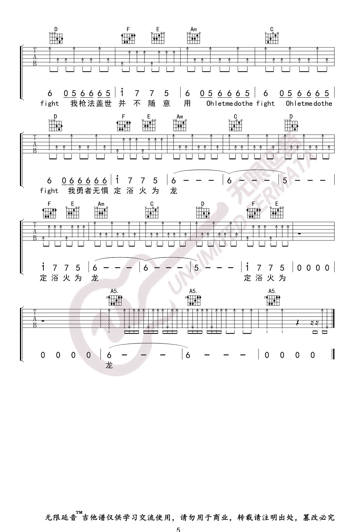 曲谱介绍: 华晨宇《荒野魂斗罗》吉他弹唱谱,采用C调指法编配,共有5张高清图谱。