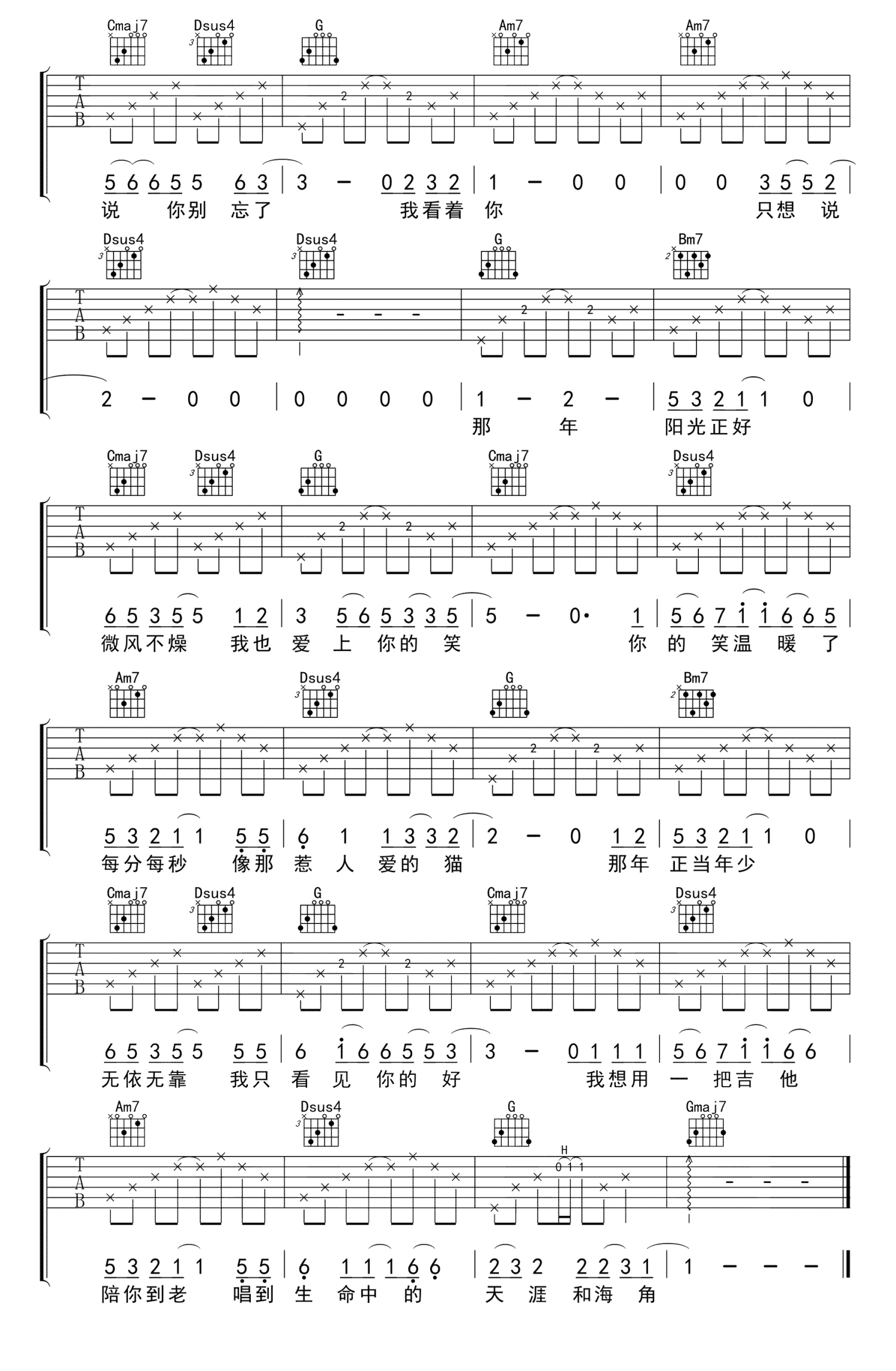 当前位置:琴谱网>吉他弹唱>年少的你