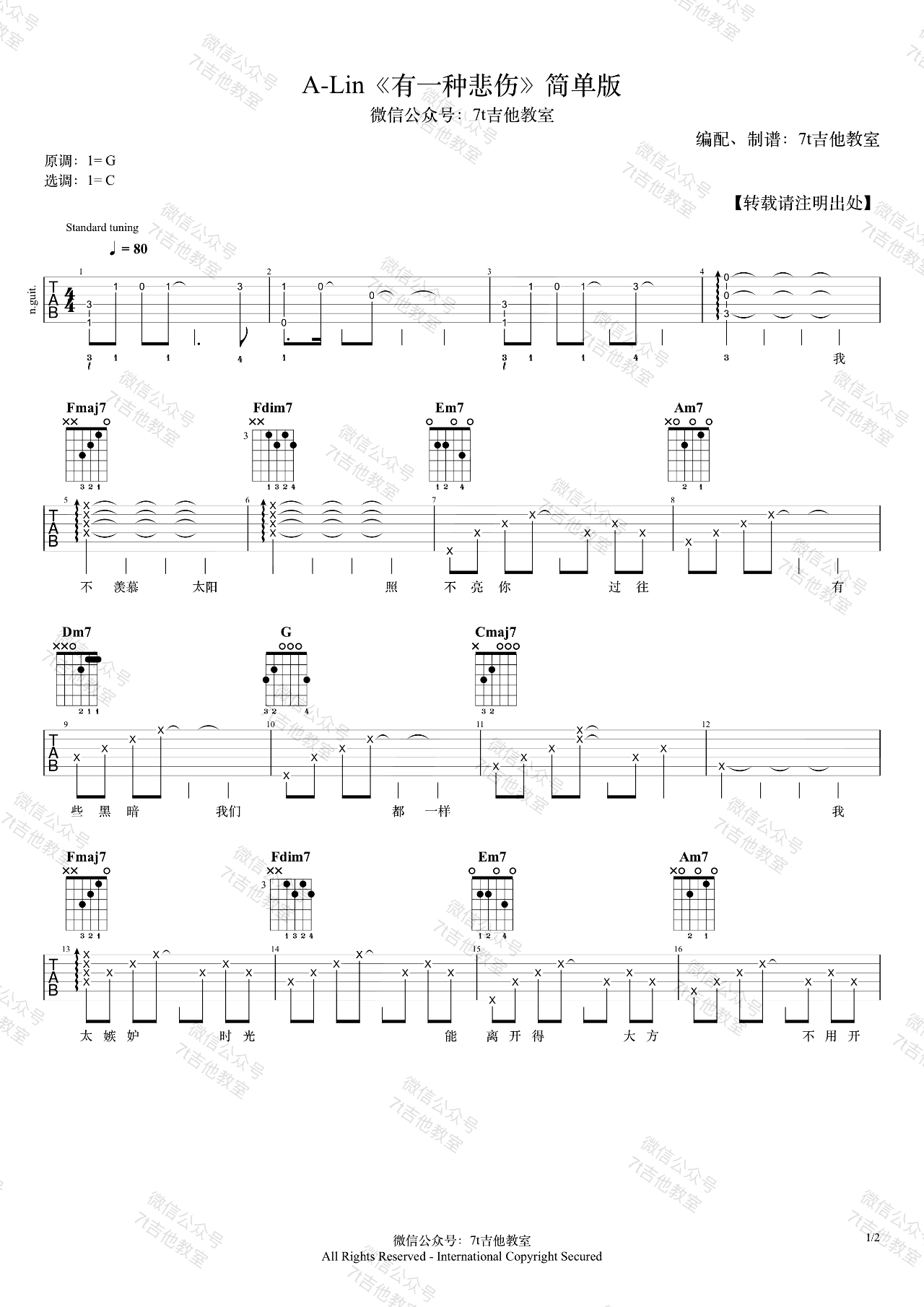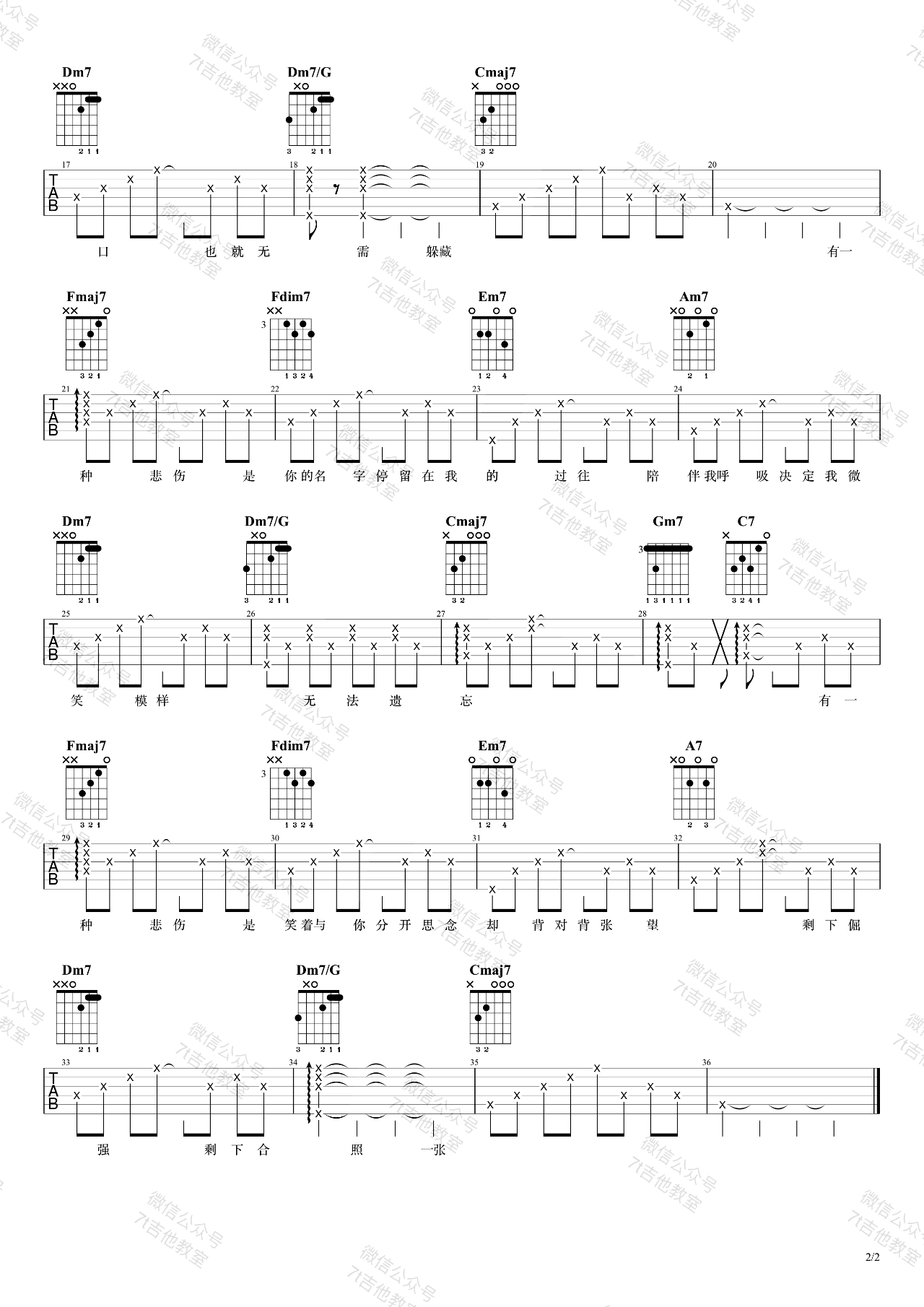 曲谱介绍: A《有一种悲伤》吉他弹唱谱,采用C调指法编配,共有2张高清图谱,免翻页排版设计。