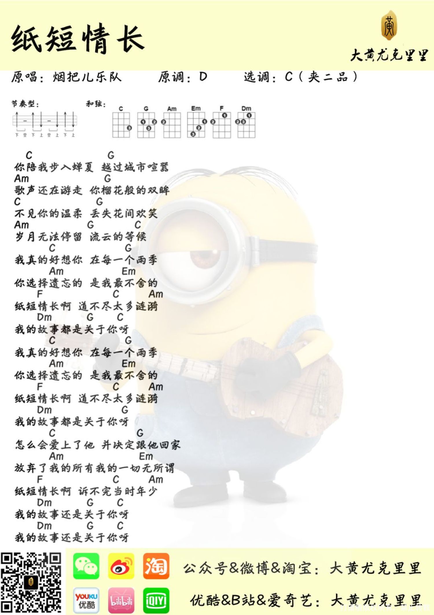 纸短情长尤克里里谱 - 烟把儿乐队