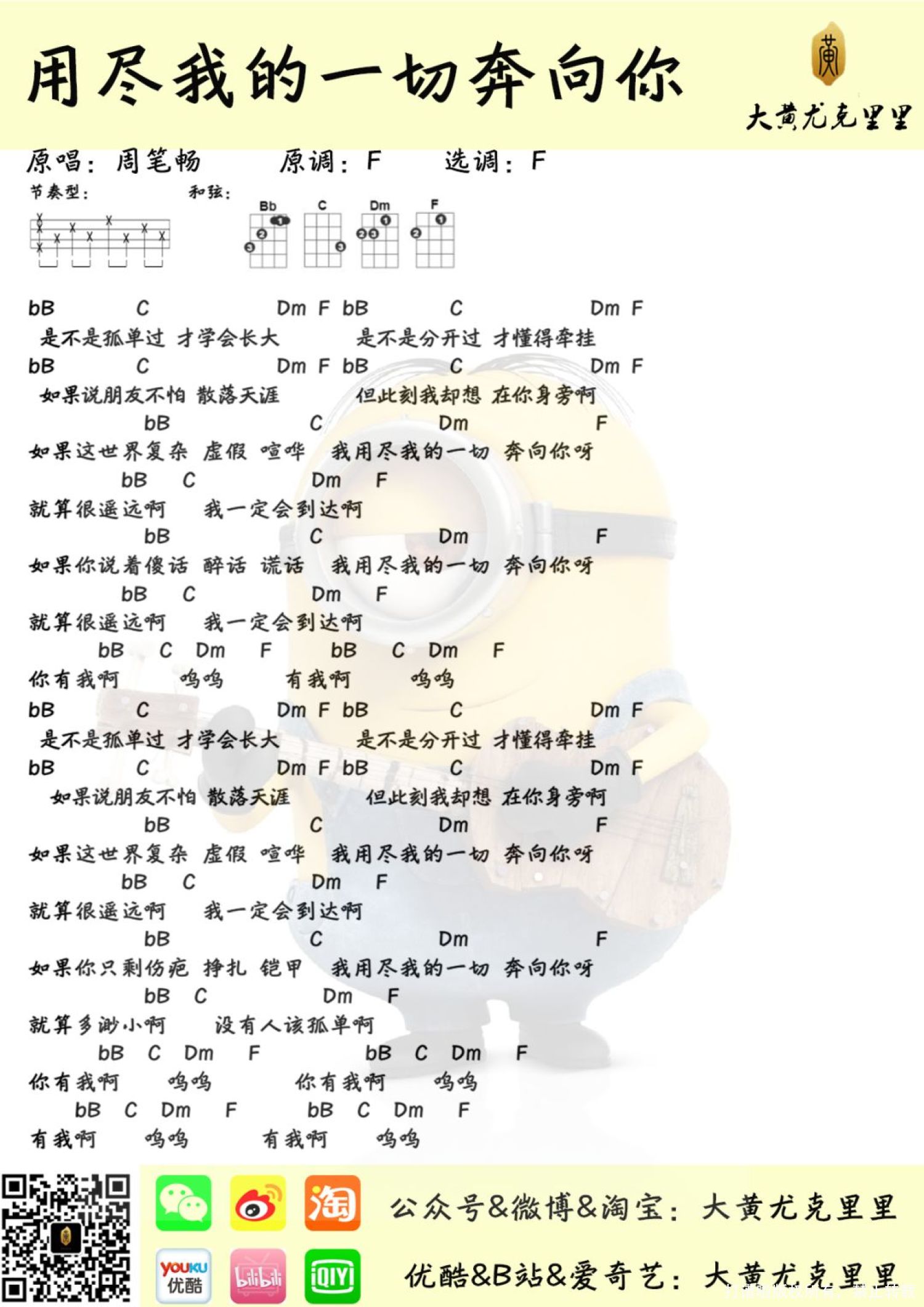 曲谱介绍: 《用尽我的一切奔向你》尤克里里谱