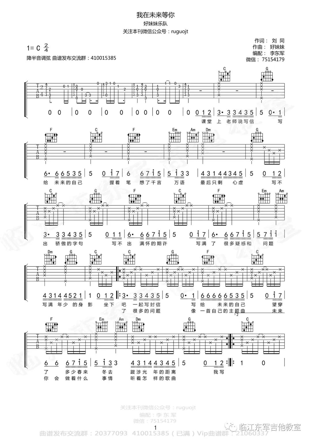 我在未来等你吉他谱 - 好妹妹乐队 - C调吉他弹唱谱