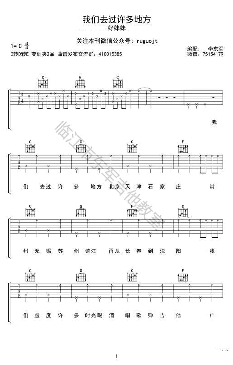 曲谱介绍: 好妹妹乐队《我们去过许多地方》吉他弹唱谱,采用C调指法编配,共有3张高清图谱。