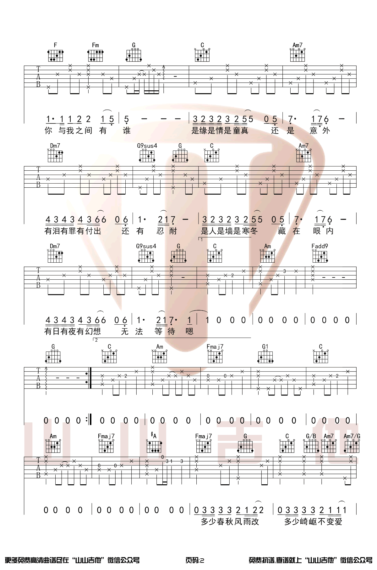 曲谱介绍: Beyond《情人》吉他弹唱谱,采用C调指法编配原版,共有3张高清图谱。