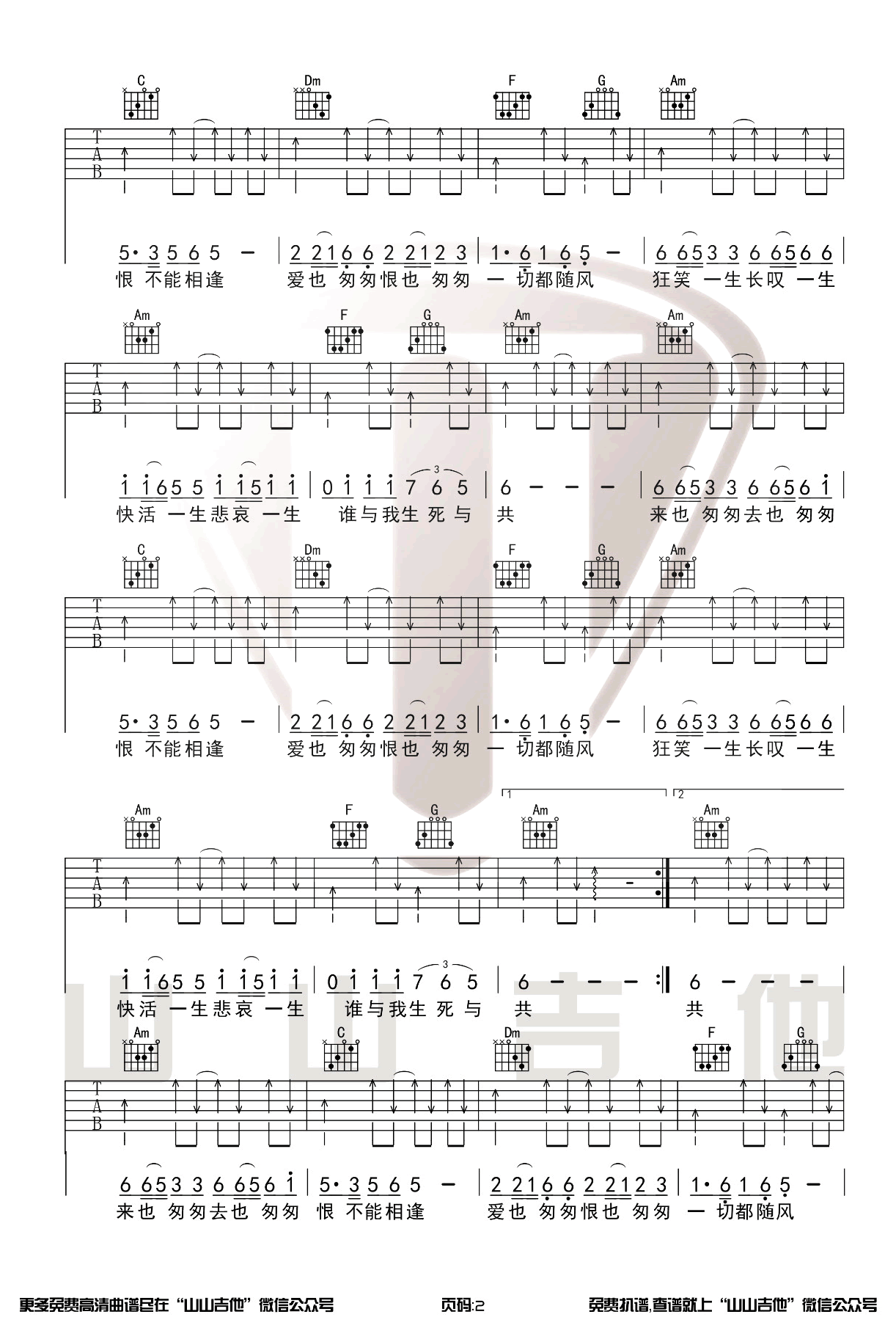 曲谱介绍: 周华健《刀剑如梦》吉他弹唱谱,采用C调指法编配原版,共有3张高清图谱。