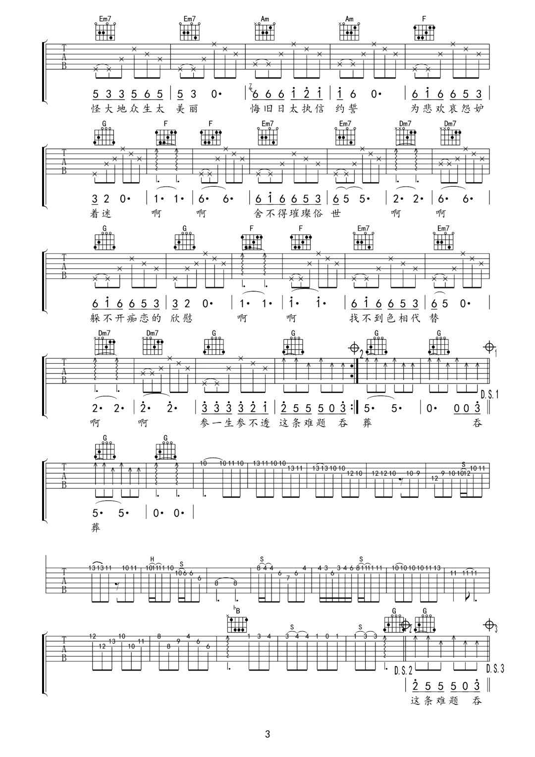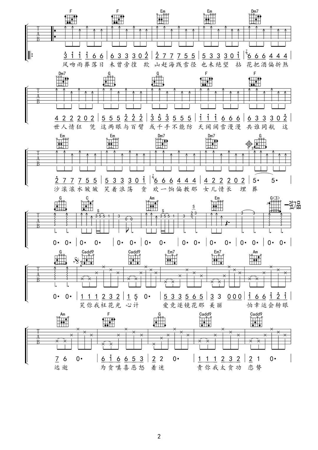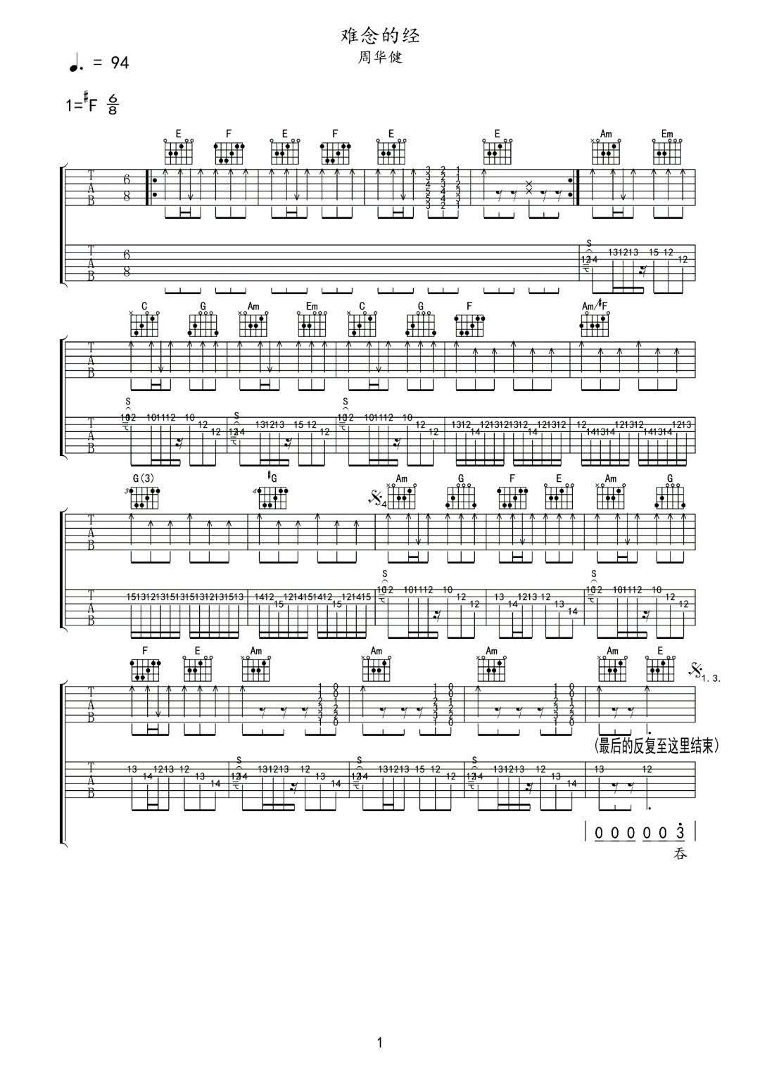 曲谱介绍: 周华健《难念的经》吉他弹唱谱,采用C调指法编配原版,共有3张高清图谱。