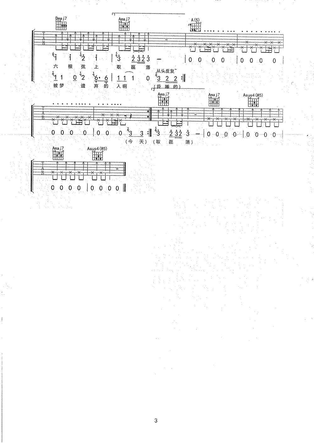 曲谱介绍: 宋冬野《梦遗少年》吉他弹唱谱,采用A调指法编配原版,共有3张高清图谱。