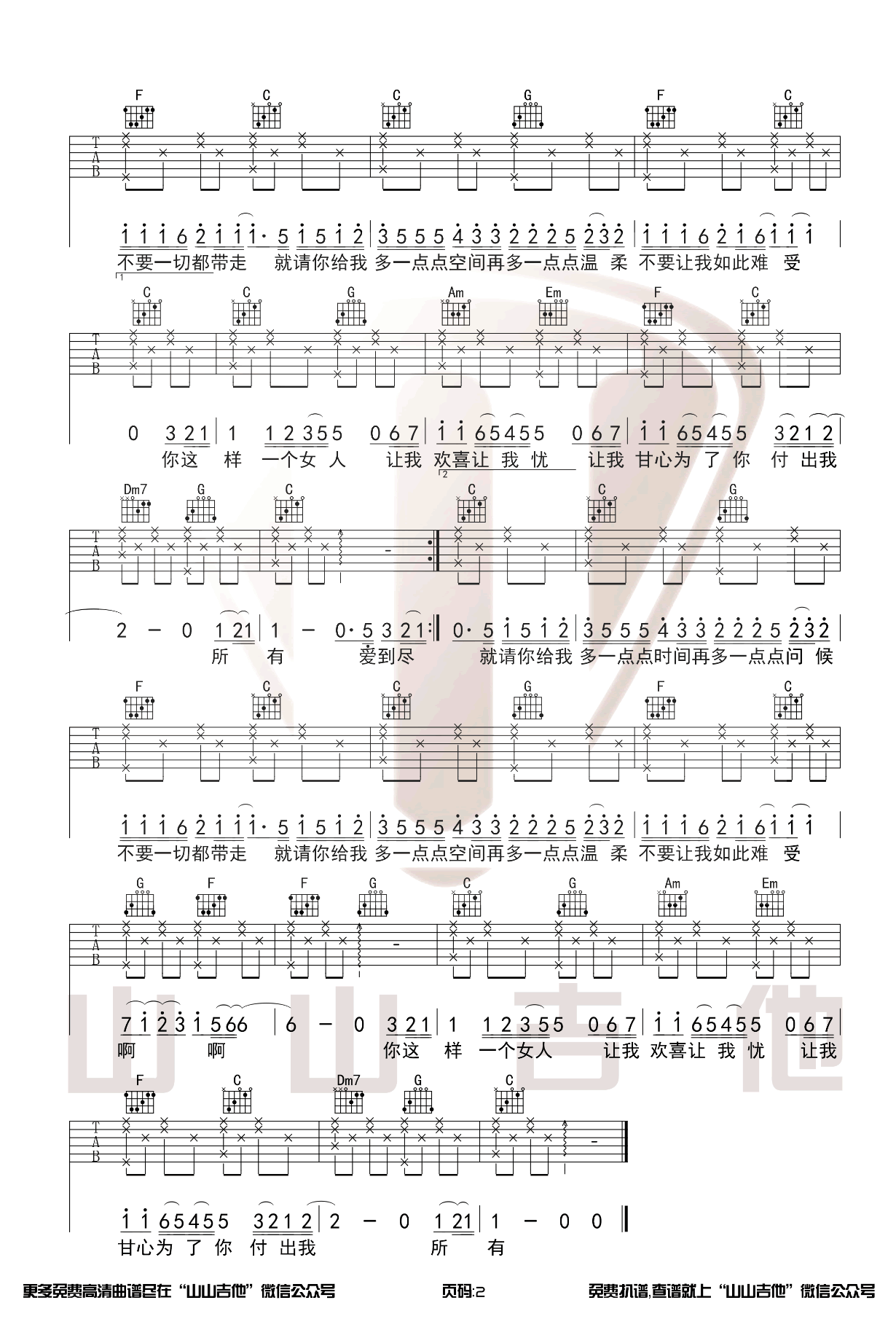 曲谱介绍: 周华健《让我欢喜让我忧》吉他弹唱谱,采用C调指法编配原版,共有2张高清图谱,免翻页排版设计。